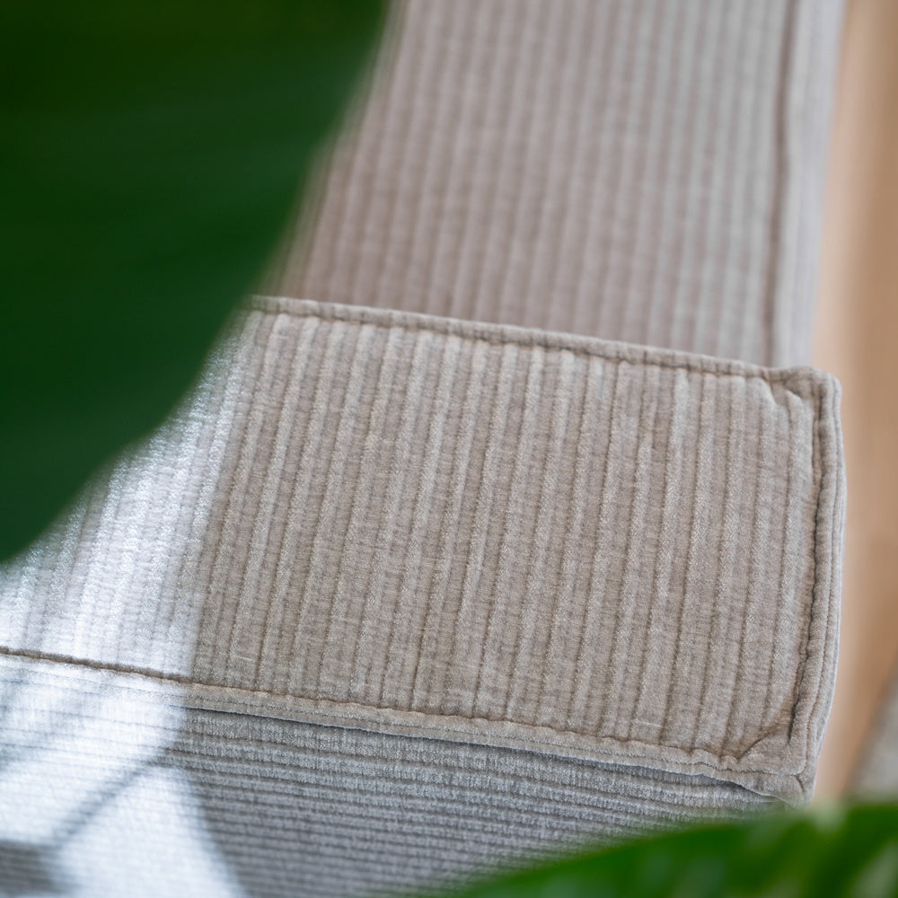 Deze Kansas bank is gemaakt van een zachte ribstof die bestaat uit 100% polyester. De stof heeft een Martindale score van 95.000. Dit betekent dat de stof zeer slijtvast is en erg lang mooi blijft. De ribstof heeft een wat dikkere streep dan de meeste ribstoffen. Daarnaast is de rib streep vrij plat, wat zorgt voor een luxe uitstraling. Tot slot voelt de stof lekker zacht aan. Dit maakt de bank nog extra comfortabel.