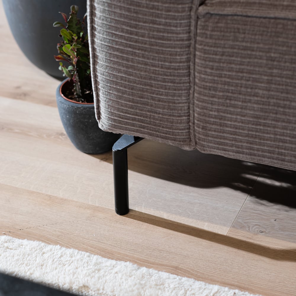 De pootjes zijn gemaakt uit gepoedercoat metaal en geven de bank een luchtige uitstraling.