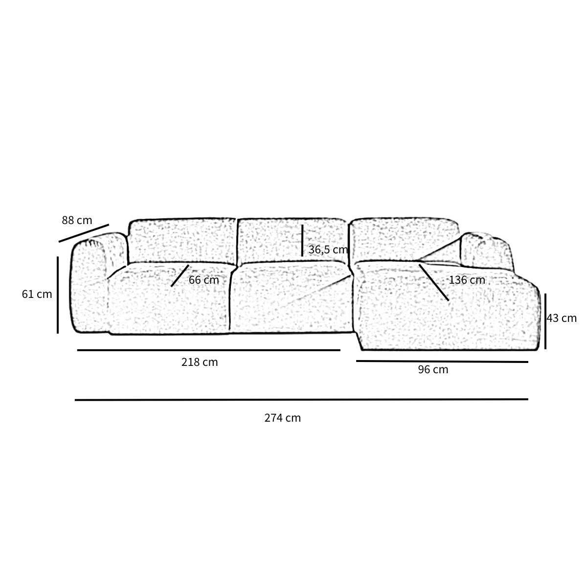 Hoekbank Maine is de perfecte balans tussen stijl en comfort, gemaakt van een fraaie gemêleerde stof. Dankzij het veelzijdige ontwerp past de Maine moeiteloos in verschillende interieurs.