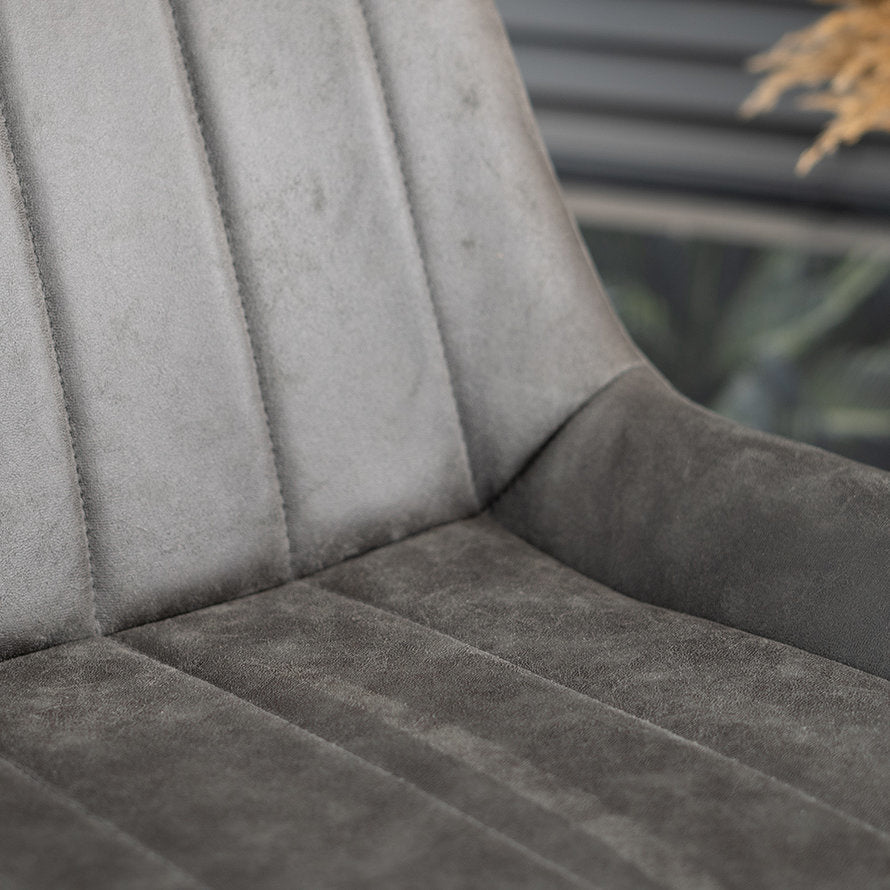De zitting van de barkruk Brooke is gemaakt van microvezel. Microvezel is een sterke, slijtvaste stof die geweven wordt met microvezel-garen. Deze garen bestaan meestal uit samengestelde vezels van polyester en polyamide. Microvezel wordt gebruikt in meubilair omdat het een aantal praktische eigenschappen heeft. Zo voelt het zacht aan en is het makkelijk schoon te houden.