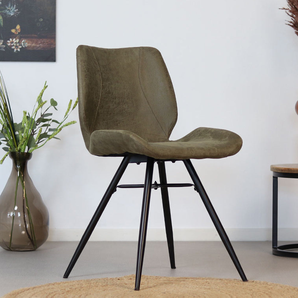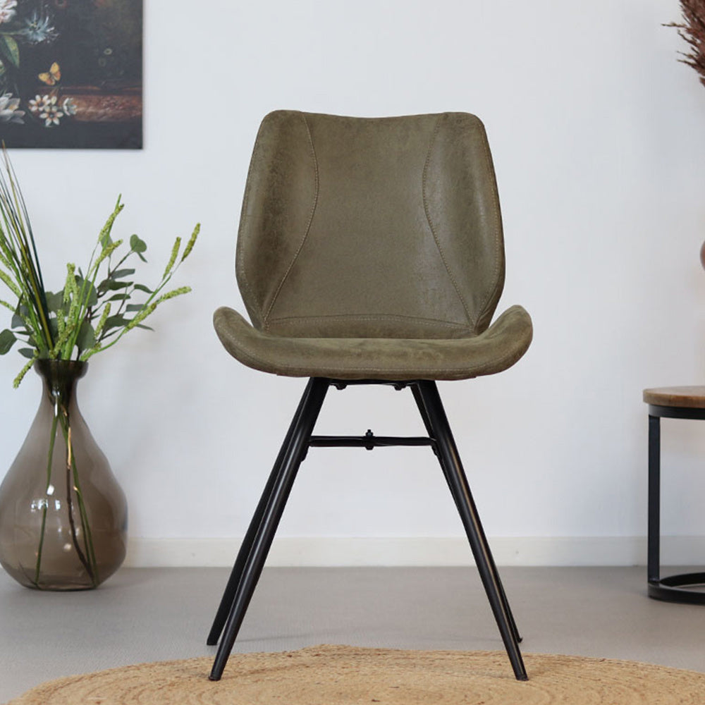 Bronx71 Industriële eetkamerstoel Barrel olijfgroen eco leer -