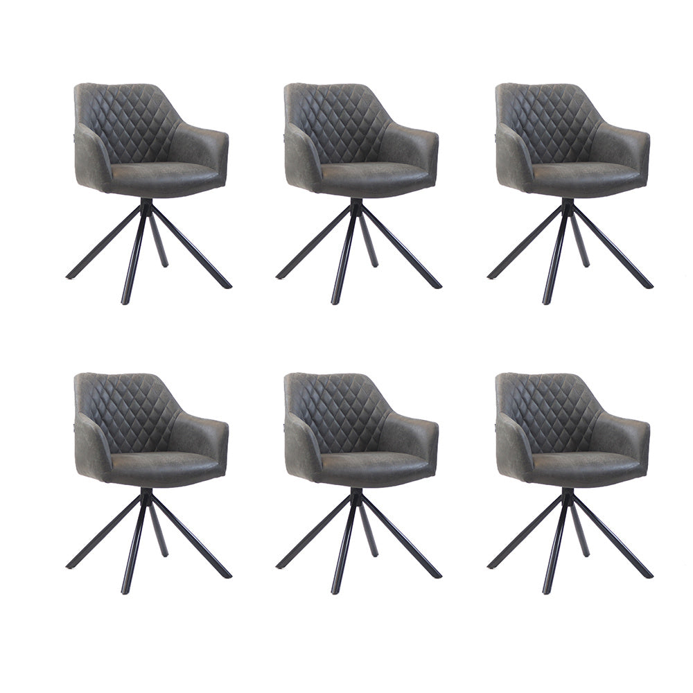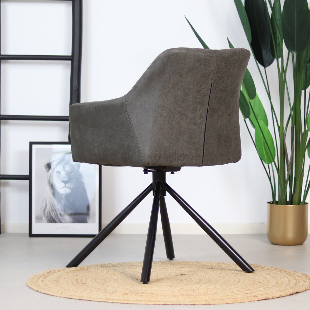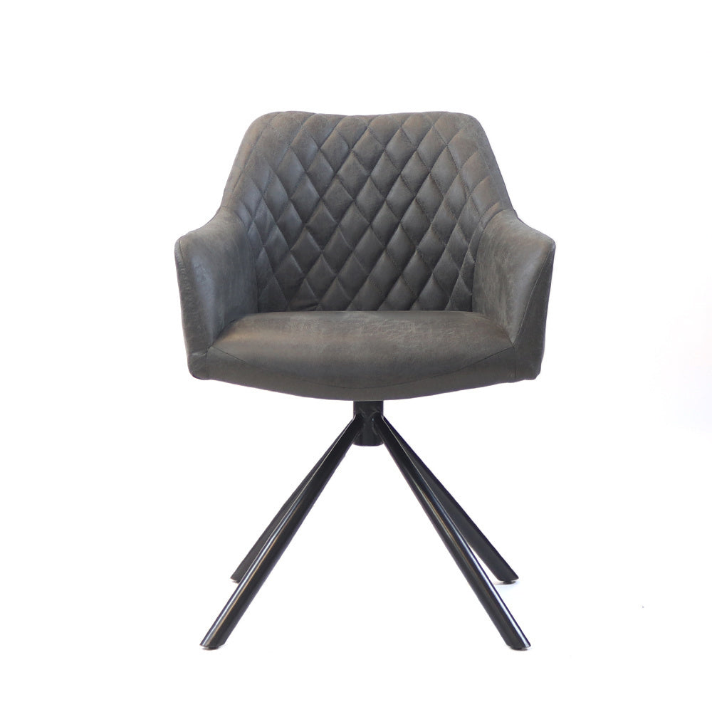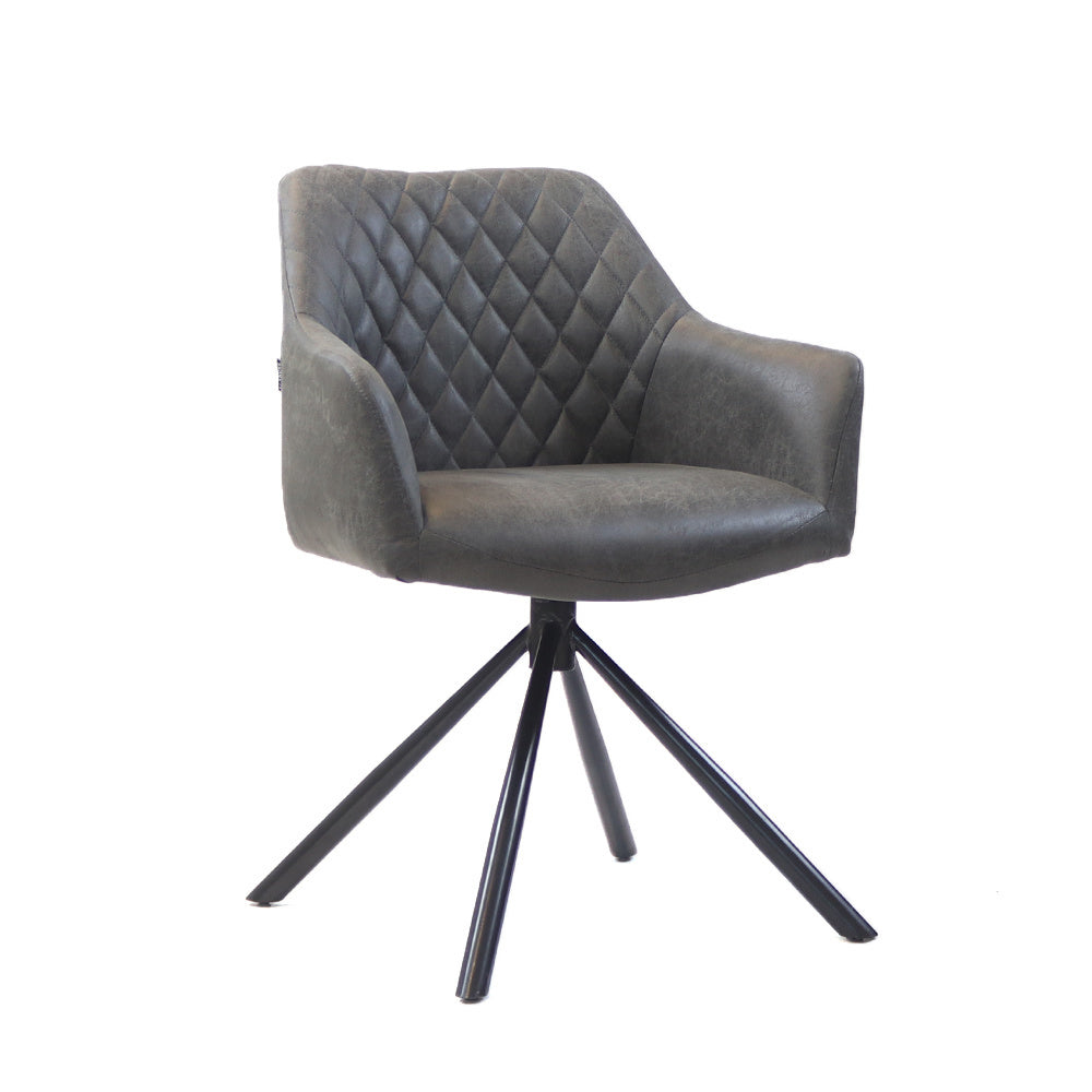 Industriële eetkamerstoel Dex heeft een stoer uiterlijk en past perfect in een industrieel interieur. Tevens past deze stoel door het strakke onderstel ook goed in een modern interieur! De zitting van de Dex is 180 graden draaibaar en zal altijd terugdraaien naar een rechte zit. Hierdoor staat de stoel altijd perfect aan de eetkamertafel! De zitting van eetkamerstoel Dex is afgewerkt met een mooi, diamantvormig patroon op de rugleuning. Hierdoor is het een echte eyecatcher.
