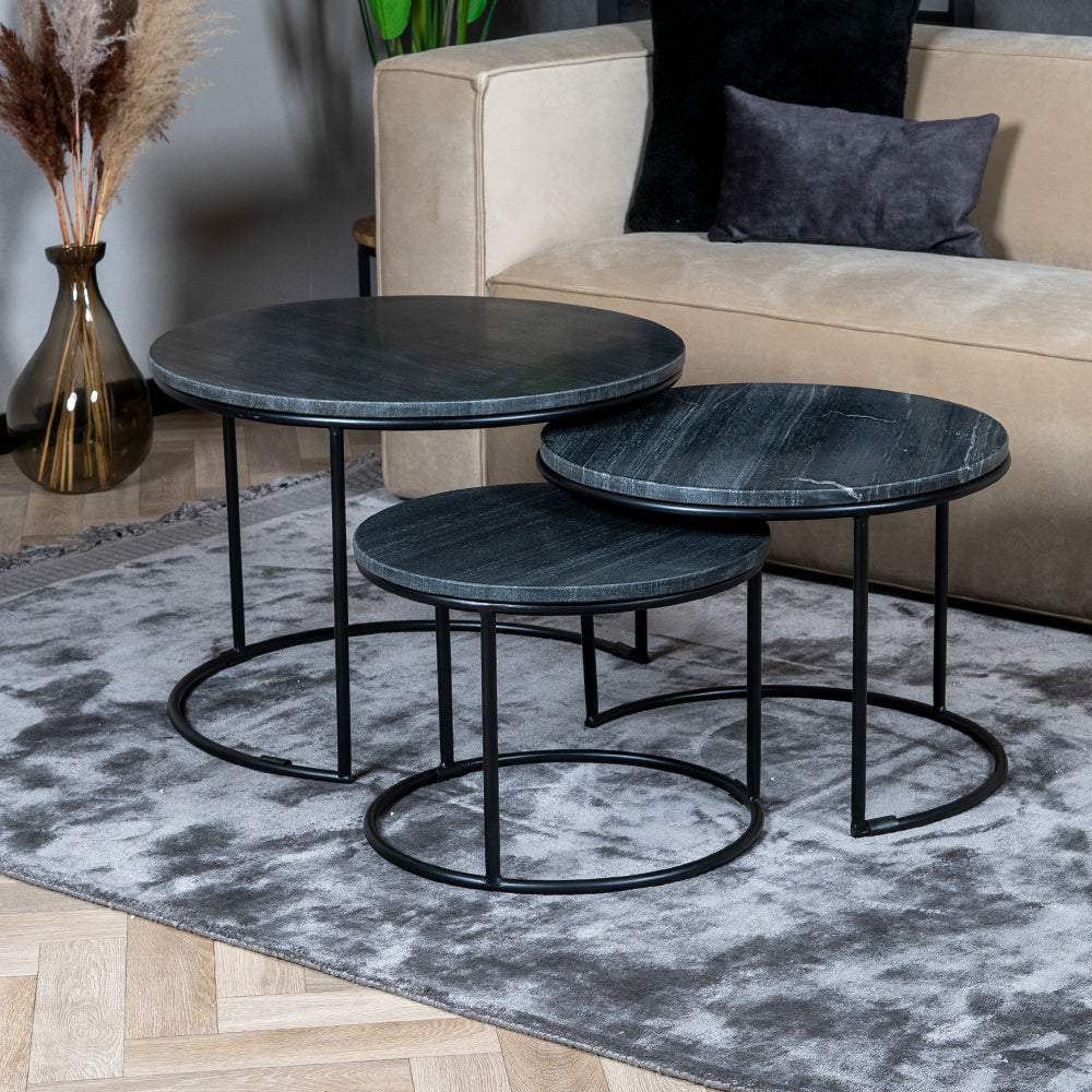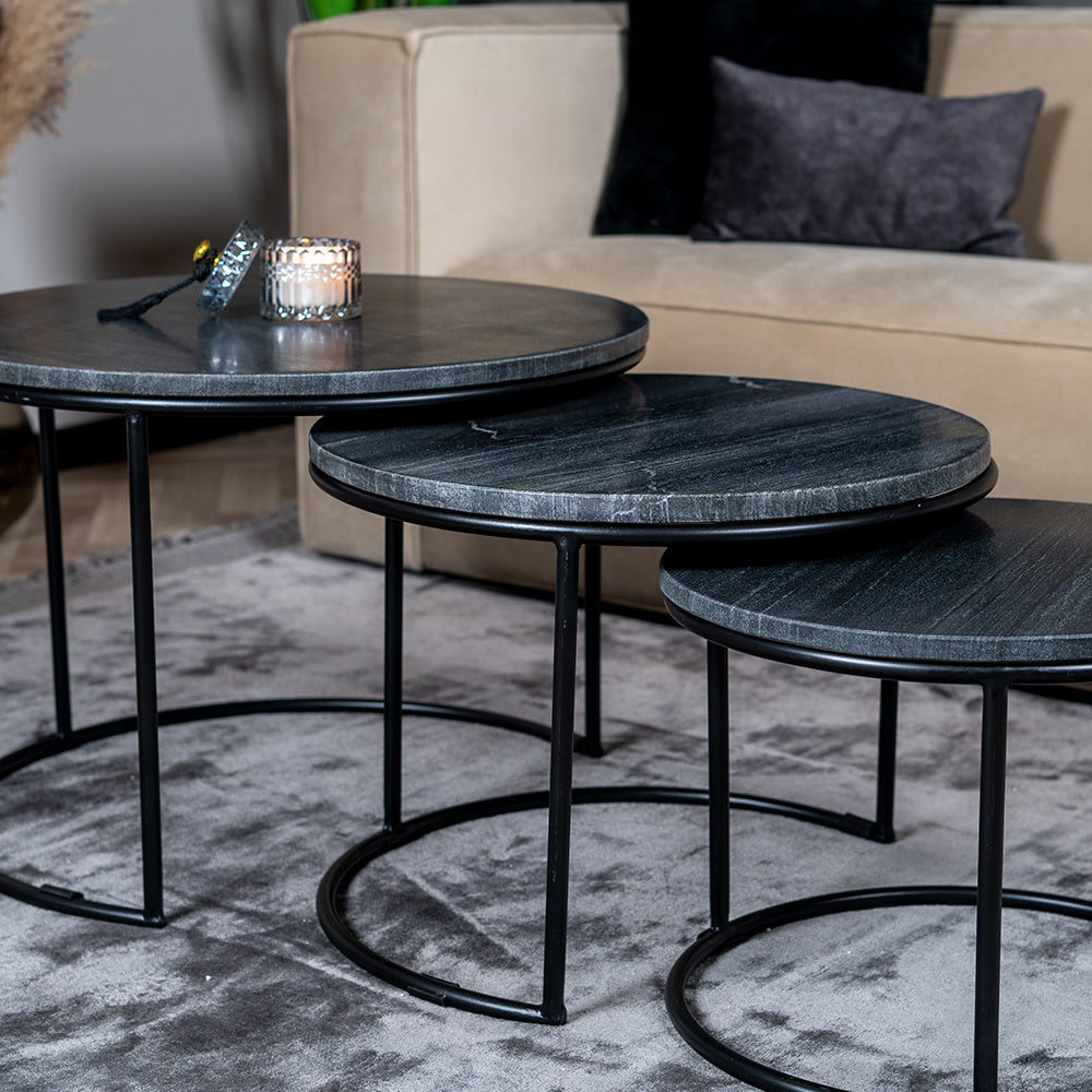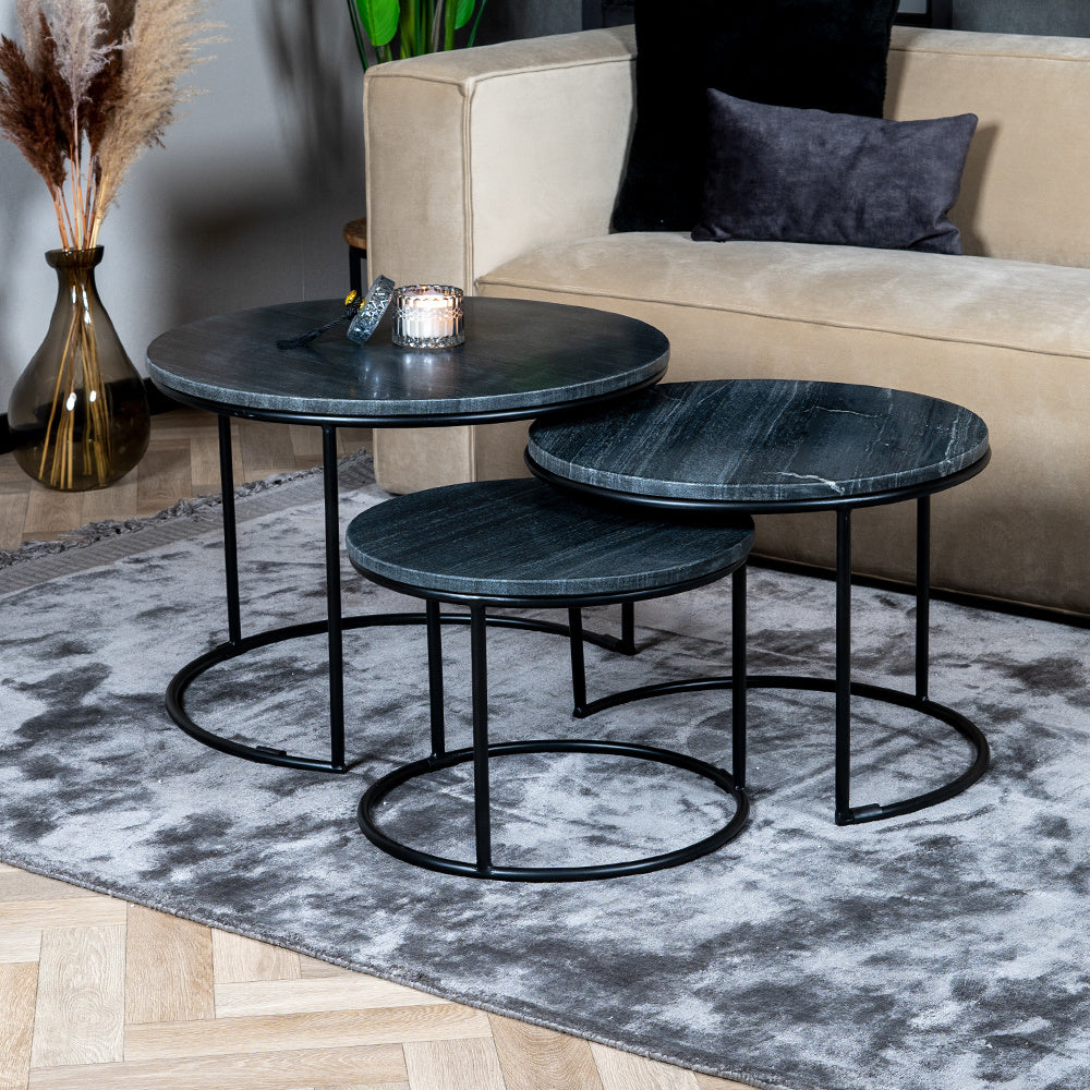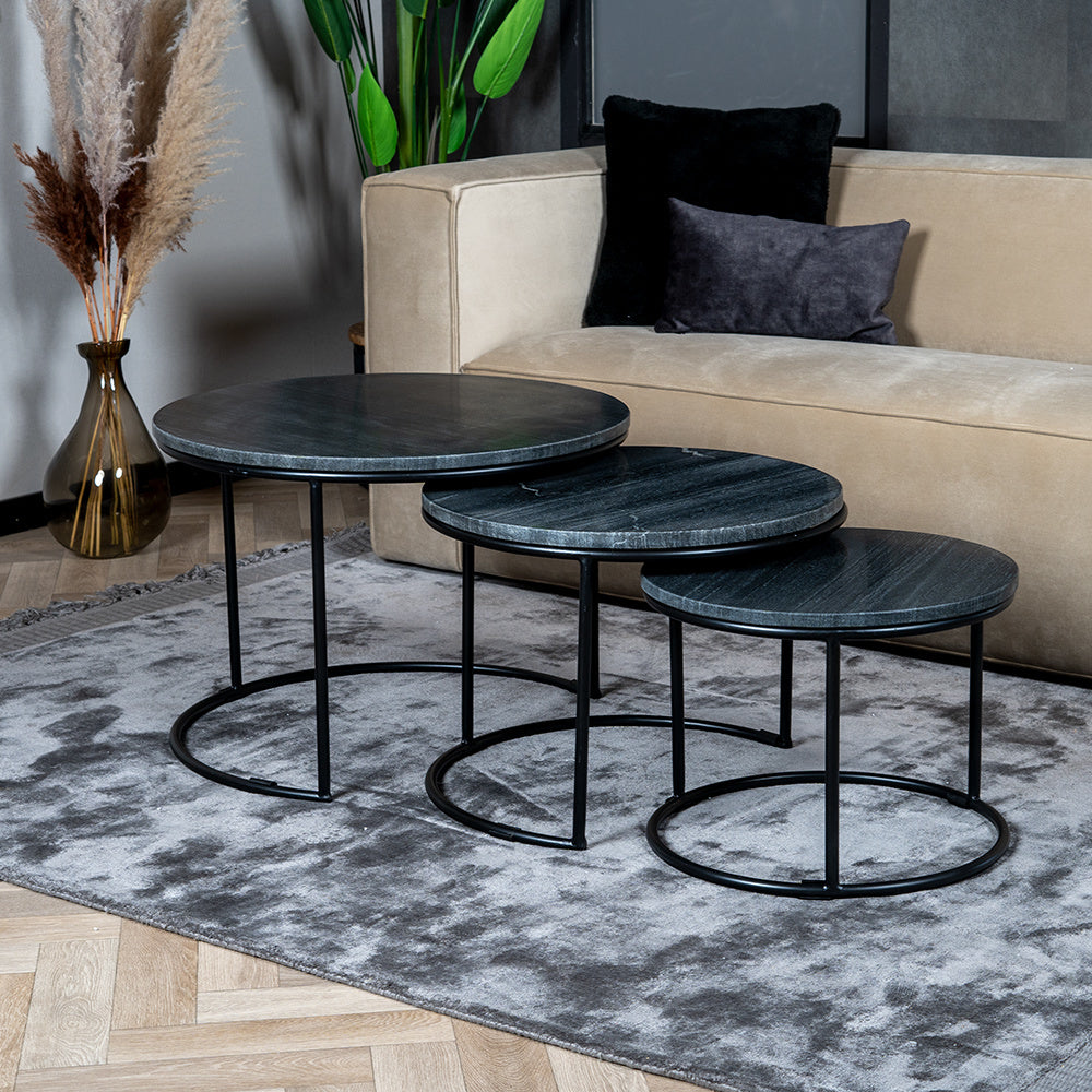 Bronx71 Marmeren salontafel set Bruce zwart (3 stuks)