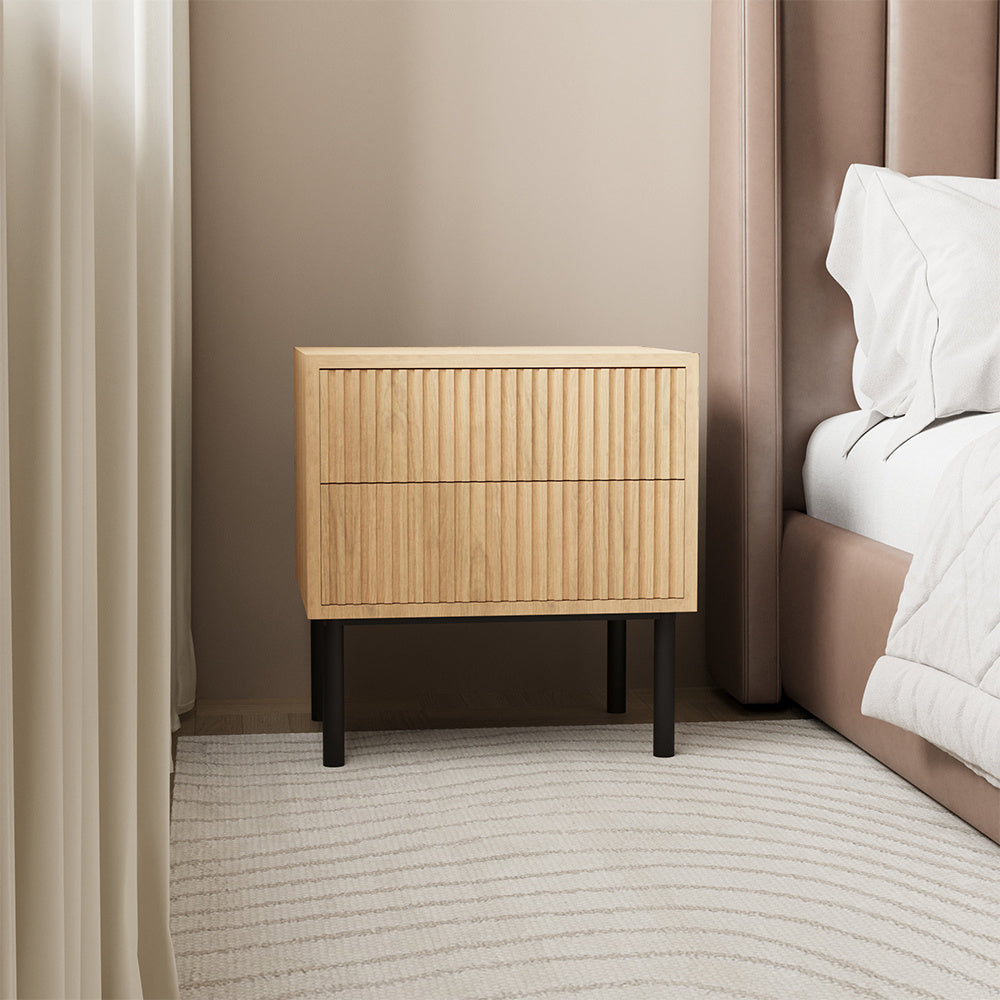 Je kunt het nachtkastje eenvoudig schoonmaken met een warme, lichtvochtige doek. De pootjes van het kastje zijn gemaakt van zwart gepoedercoat metaal. Het meubel is bij levering al volledig gemonteerd, maar het onderstel met de poten dien je nog wel zelf onder het meubel te bevestigen.