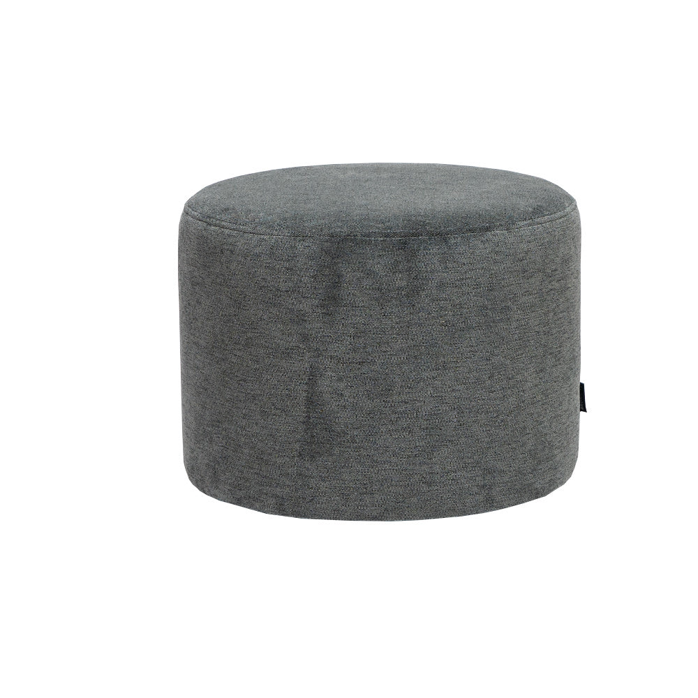 Poef Myles is te krijgen in de kleuren taupe, antraciet, zwart en wit. De poef heeft een diameter van 50 centimeter en is 37 centimeter hoog.