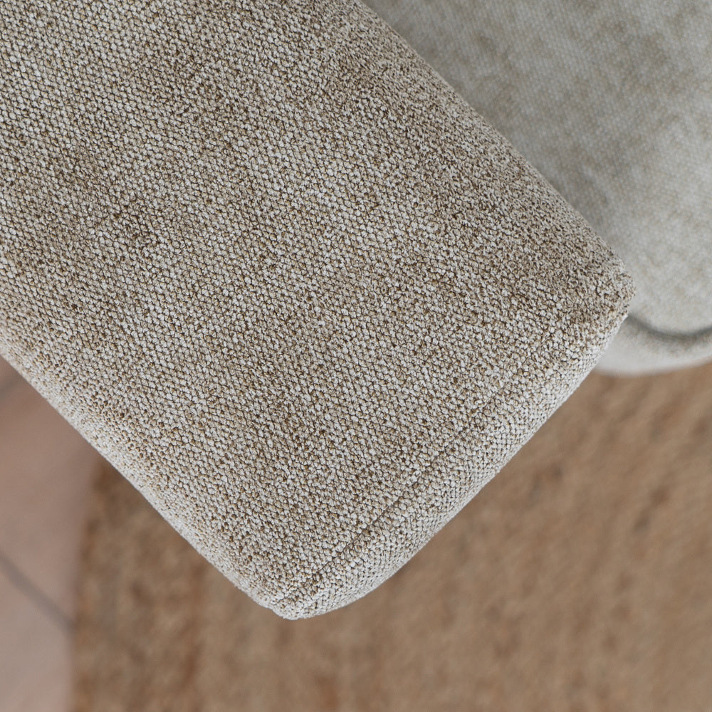 De Orlando bank is bekleed met een sterke gemêleerde stof. Deze stof heeft niet alleen een luxe uitstraling, maar is ook nog eens gemakkelijk schoon te maken dankzij de waterafstotende eigenschappen. Zo hoef je je geen zorgen te maken als je per ongeluk wat morst op je bank, want je kunt de vlekken eenvoudig verwijderen.