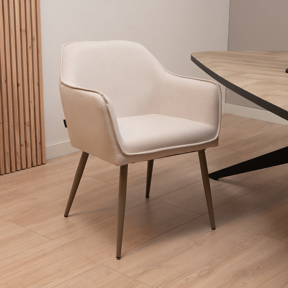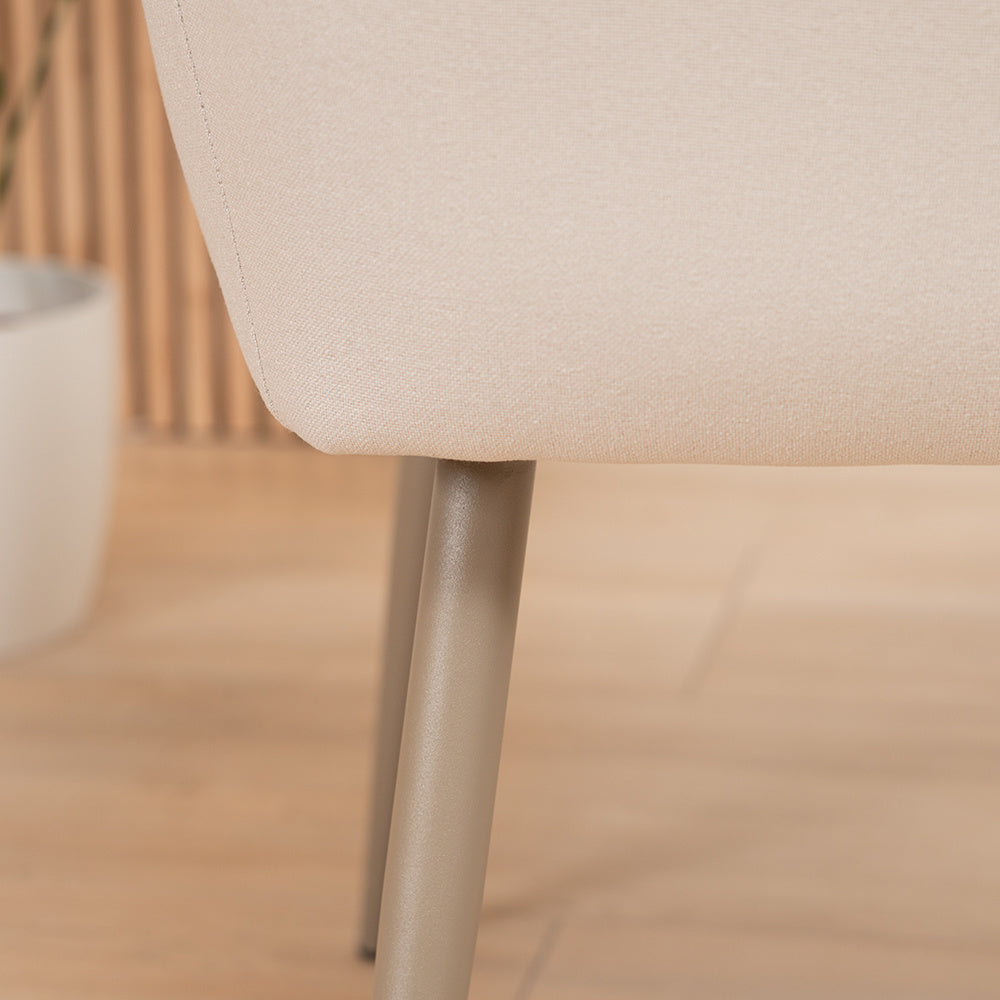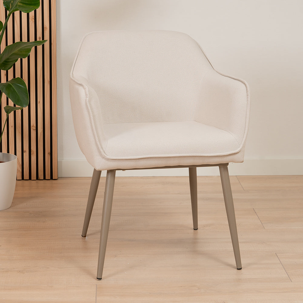 Het unieke aan de Elin eetkamerstoel is dat het frame is uitgevoerd in een taupe kleur. Dit zorgt voor rust, eenvoud en speelt helemaal in op de huidige interieurtrend. Het frame is gemaakt van gepoedercoat metaal.