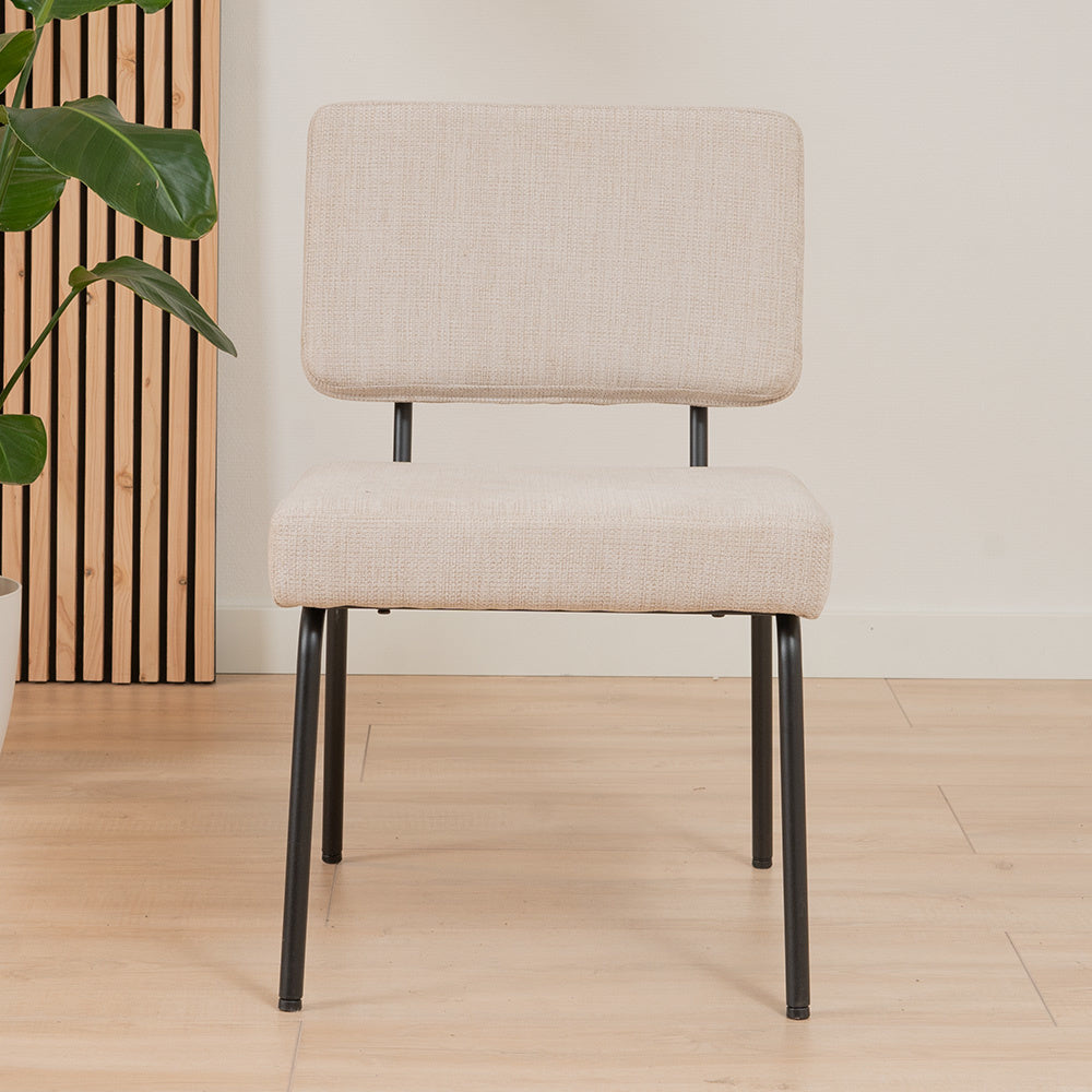 - De stoel is ruimtebesparend doordat deze geen armleuningen heeft.