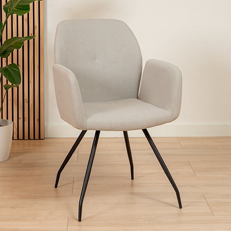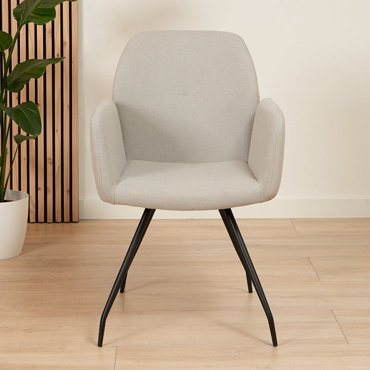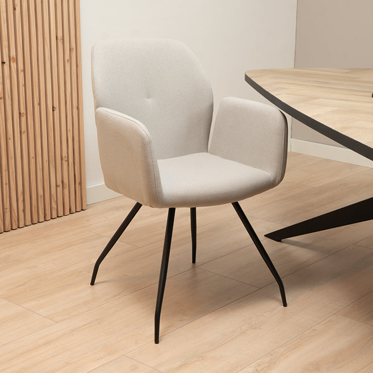 Eetkamerstoel Frey - set van 6 - is een comfortabele stoel met Scandinavische uitstraling. Door de hoge rugleuning en armleuningen kun je op stoel Frey uren blijven tafelen. De stof van de Frey is op duurzame wijze