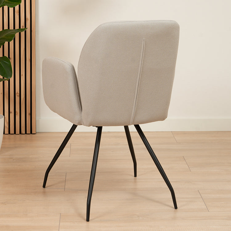 De Scandinavische eetkamerstoel heeft een hoge rugleuning. Hierdoor zit de stoel erg comfortabel en is ook geschikt voor langere mensen. Doordat de armleuningen niet aan de rugleuning zijn bevestigd, behoudt de stoel een luchtige uitstraling.