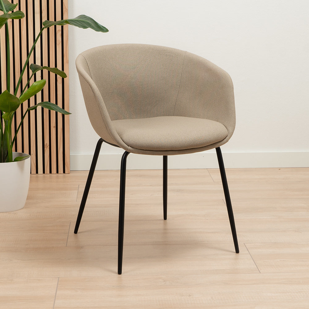 Scandinavische stoel Ole is verkrijgbaar in de kleuren beige, taupe en grijs.