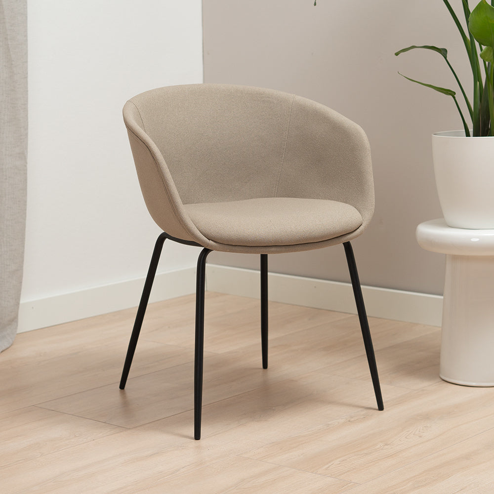 Scandinavische eetkamerstoel Ole is een comfortabele stoel met een kuip design. Door de ronde vormen van de zitting en het ranke frame krijgt de stoel een minimalistische uitstraling en past hierdoor perfect in een Scandinavisch interieur.