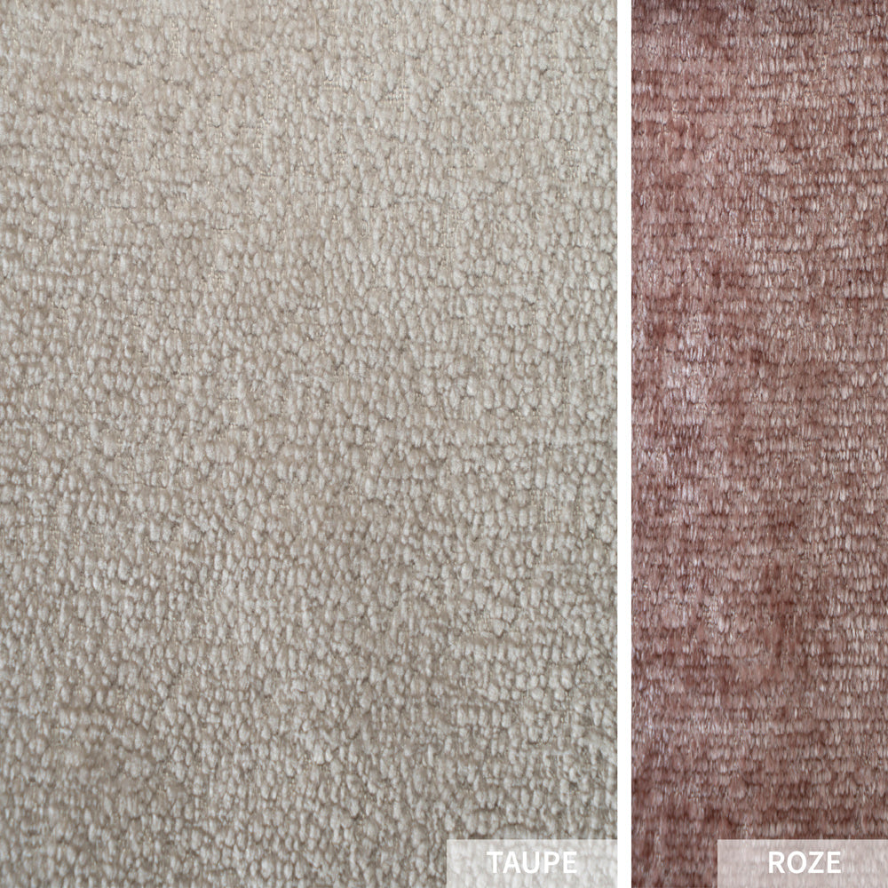 De Sophie fauteuil is gemaakt van chenille stof. Chenille wordt gemaakt van chenille garen die bestaan uit polyester. De stof krijgt een luxe en chique uitstraling door de subtiele glans. Kenmerkend voor chenille stof is dat het door zijn zachte glans op fluweel lijkt. Daarnaast is chenille gemakkelijk in onderhoud. De stof heeft een martindale score van 100.000, wat inhoudt dat de fauteuil extreem slijtvast is en wel tegen een stootje kan. Fauteuil Sophie is te verkrijgen in de kleuren wit en roze.