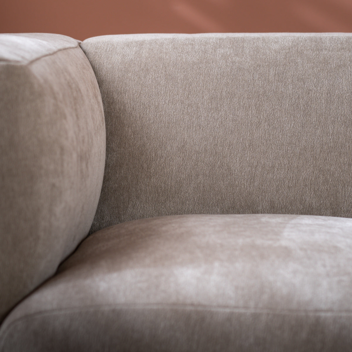De afgeronde hoeken van deze bank voegen een speels en eigentijds element toe aan het tijdloze Scandinavische ontwerp. De taupe kleur geeft een vleugje verfijning en harmonie aan elke kamer, waardoor een uitnodigende sfeer ontstaat waar je keer op keer naar terug wilt keren. De Karla bank is een echte plofbank waar je de hele avond op kunt vertoeven. Door de chunky kussens is deze bank extra comfortabel.
