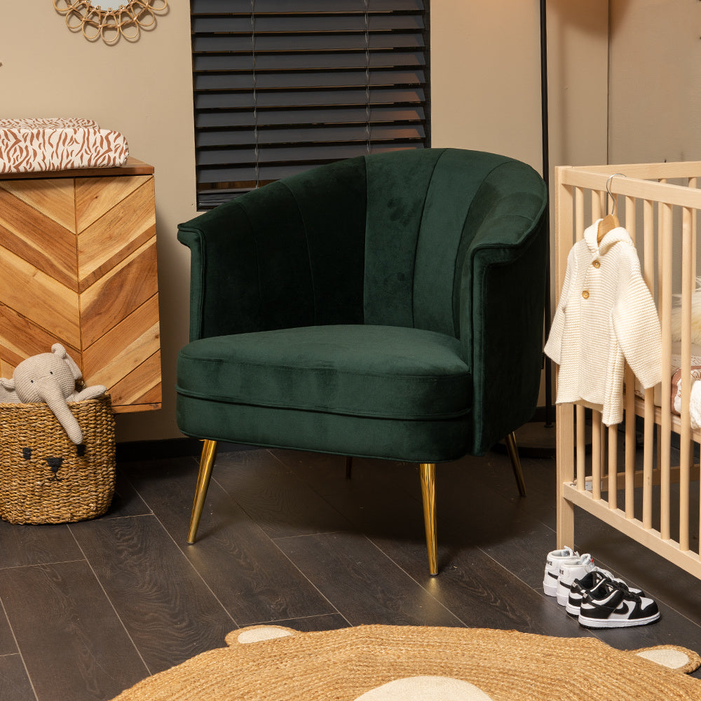 Stoel babykamer Amy is een moderne, comfortabele fauteuil die goed in te zetten is in de babykamer als voedingsstoel. Door het heerlijke zitcomfort en de hoge armleuningen is de babykamer fauteuil perfect om jou baby in te voeden. Daarnaast heeft de fauteuil een ideale zithoogte voor het geven van voeding, je kan moeiteloos gaan zitten én weer opstaan met de baby op je arm. Wanneer jij jouw kleine niet meer hoeft te voeden, is de fauteuil ook goed in te zetten in andere plekken in het interieur zoals de woonkamer of de eigen slaapkamer.