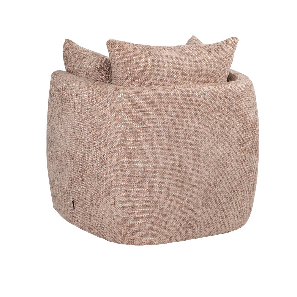 Fauteuil Ruby is te verkrijgen in de kleuren okergeel, taupe, roze en zwart.