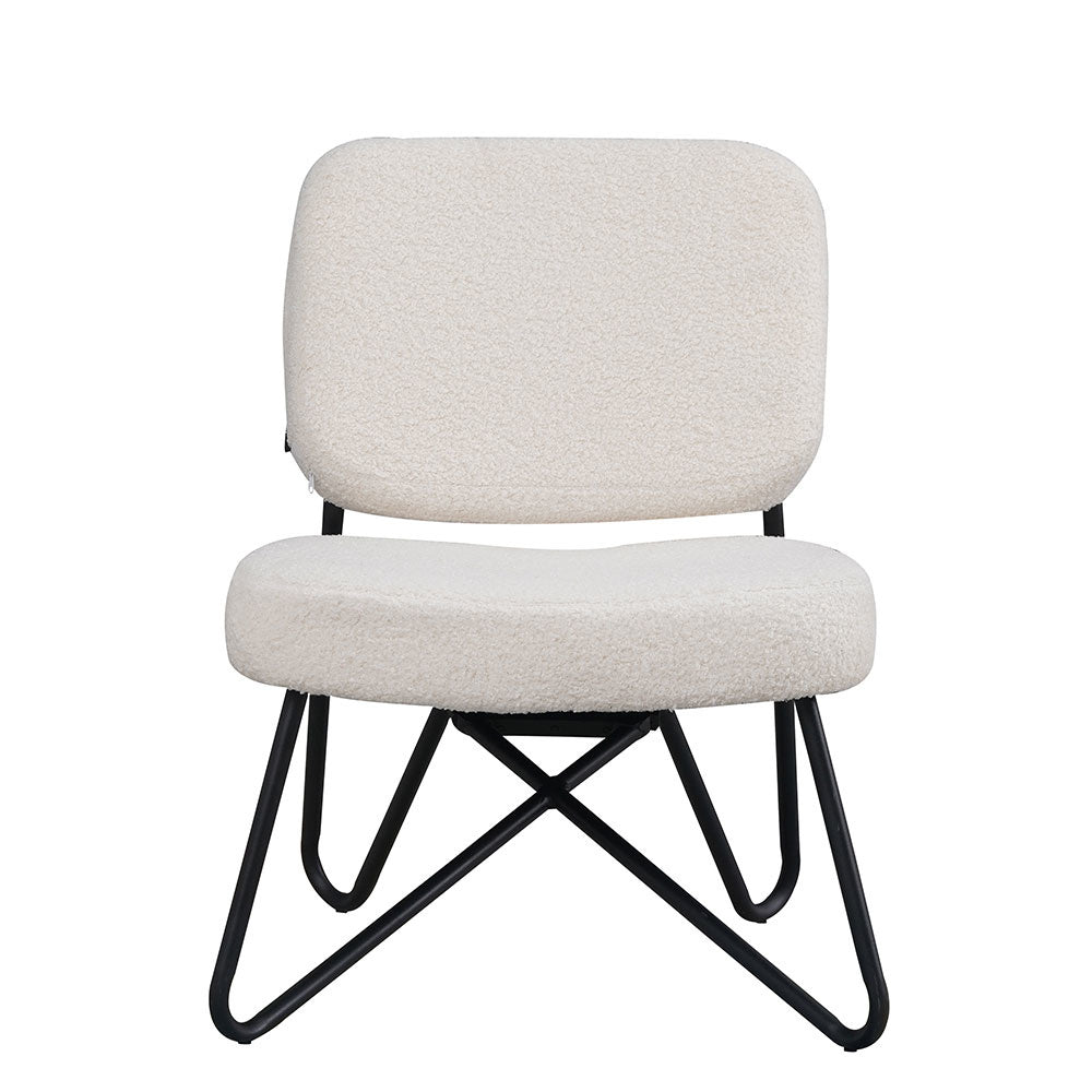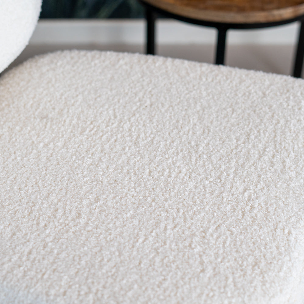 De zitting van de Julia fauteuil is gemaakt van teddy stof. Deze is gemaakt van polyester in combinatie met acryl. Deze combinatie bootst de geplooide en gladde structuur van echt bont na. Fauteuil Julia heeft een opvallend gepoedercoat zwart metalen onderstel. Julia mag dan een subtiele zitting hebben, maar dat neemt niet weg dat de fauteuil heerlijk zit. Deze fauteuil is perfect voor een gezellig avondje met vrienden en familie.