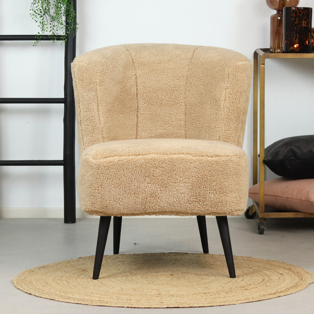 Teddy fauteuil Lyla is een echte eyecatcher in elk interieur! Teddy stof is niet voor niets een trend. Het is zacht, fluffy én super comfortabel! Met de Lyla fauteuil Teddy haal jij een warm en geborgen gevoel in huis. Relaxen in deze fauteuil wordt echt heerlijk door de super zachte stof waar deze stoel mee bekleed is! De fauteuil heeft een compact formaat, hierdoor komt deze op veel verschillende plekken goed tot zijn recht! Geef de fauteuil een plek naast de bank, in een lege hoek in de kamer of op een andere mooie plek in je interieur!