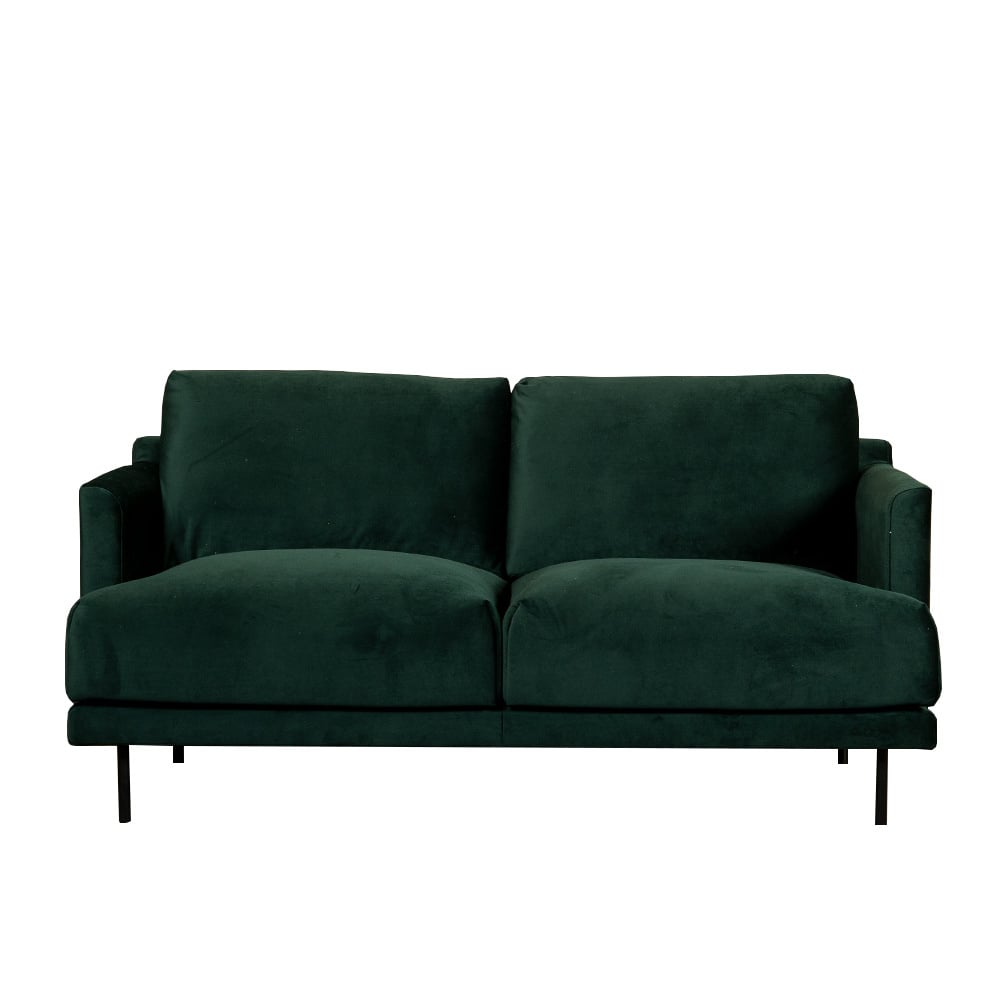 De comfortabele bank rust op vier zwarte metalen poten, waardoor de bank een luchtige uitstraling heeft en het ook gemakkelijk is om de vloer of het kleed onder de bank schoon te houden.