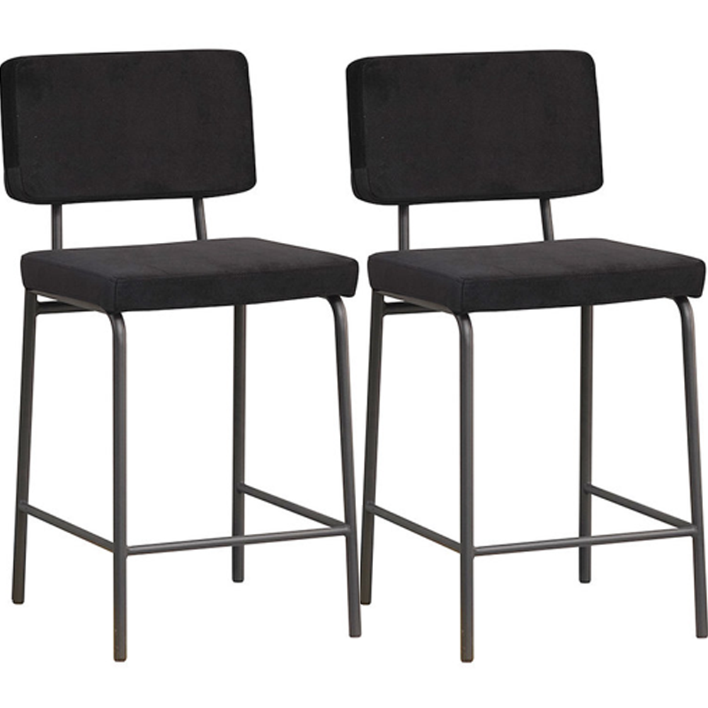 Bronx71 Velvet barkruk Espen zwart 64-77 cm - Barkrukken set van 2