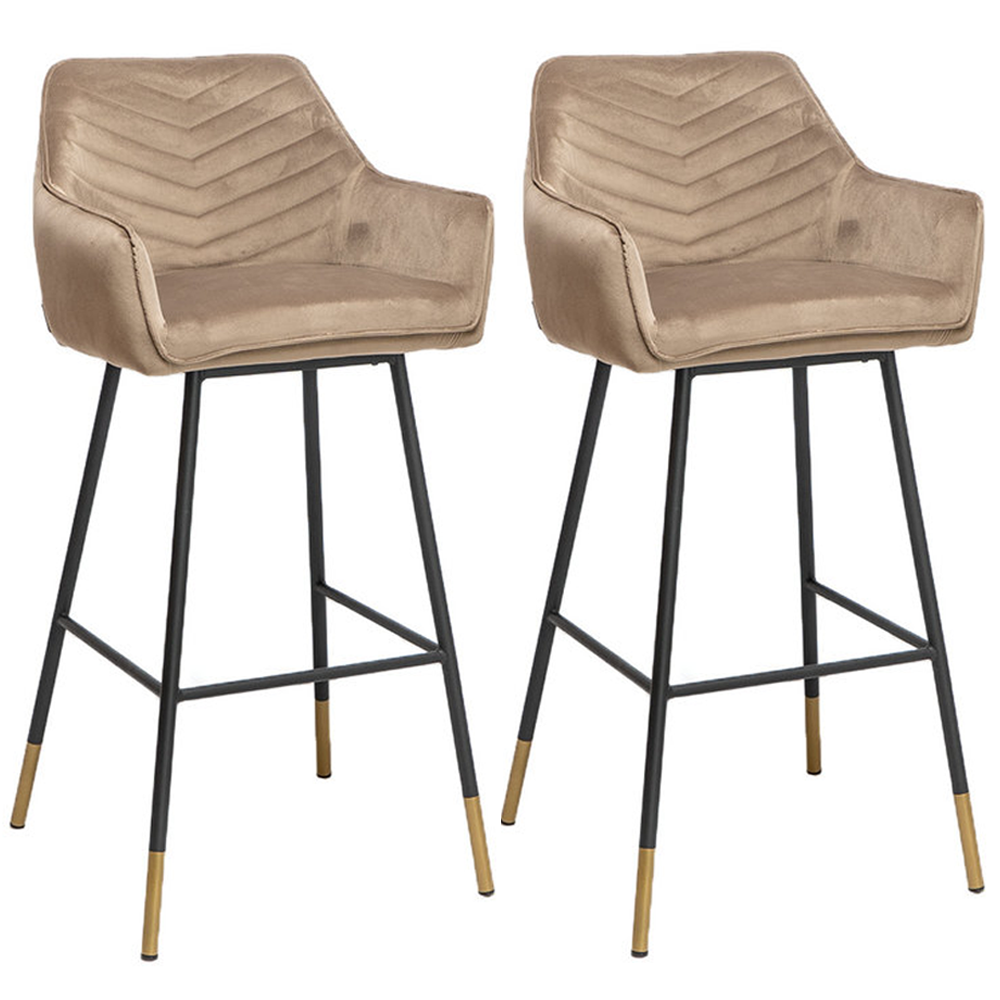Bronx71 Velvet barkruk Fiona taupe 65-78 cm - Barkrukken set van 2