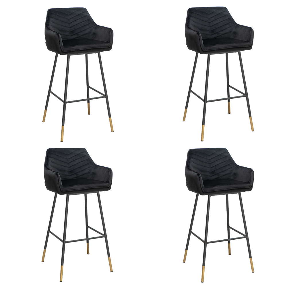Bronx71 Velvet barkruk Fiona zwart 65-78 cm - Barkrukken set van 4