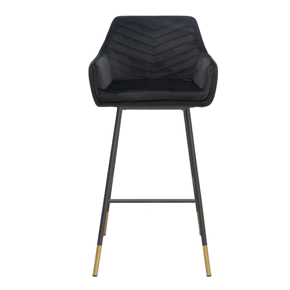 Het onderstel is gemaakt van zwart gepoedercoat metaal waardoor de kruk erg stevig en stabiel staat. De chique gouden pootjes maken dat je de hoogte van de kruk zelf kunt bepalen. De bijgeleverde pootjes zijn gemakkelijk onder het onderstel te draaien. De armleuningen en de dikke zitting maken de barkruk super comfortabel. Zo kun je uren blijven zitten.