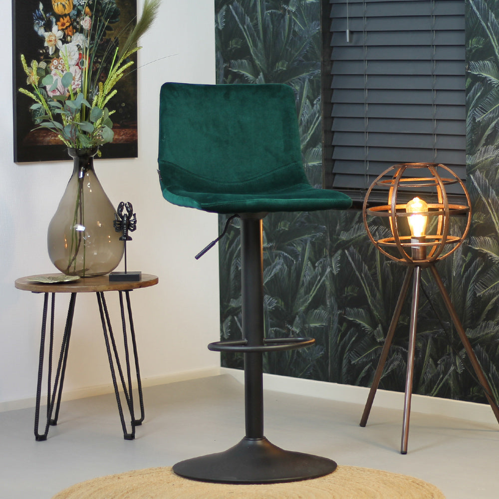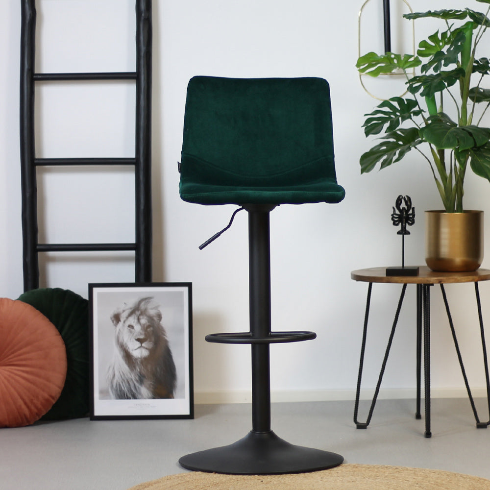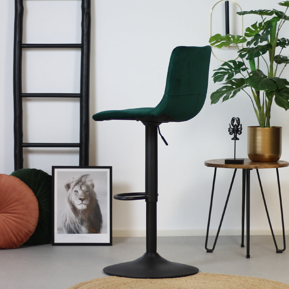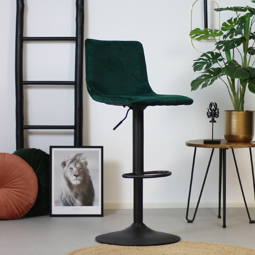 De in hoogte verstelbare barkruk Frenkie is bekleed met een zachte velvet stof en biedt hierdoor een heerlijk zitcomfort. Velvet, ook wel bekend als velours of fluweel, geeft direct luxueuze uitstraling aan het interieur! De velvet barkruk is waterbestendig. Door de groene kleur geef je een moderne touch aan het interieur!