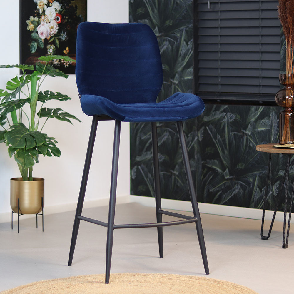 Bronx71 Velvet barkruk Toby donkerblauw 71 cm - Barkrukken set van 2