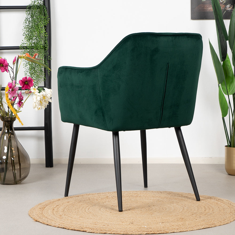 Velvet eetkamerstoel Fiona past door de combinatie van de verschillende materialen in veel interieur stijlen! De binnenkant van de rugleuning is voorzien van een stiksel met een mooi visgraat patroon, dit geeft een luxe en unieke uitstraling aan de stoel. De eetkamerstoel Fiona heeft een erg hoog zitcomfort, dit komt deels door de zachte armleuningen. Dat is pas heerlijk thuis komen en meteen lekker aan tafel schuiven!