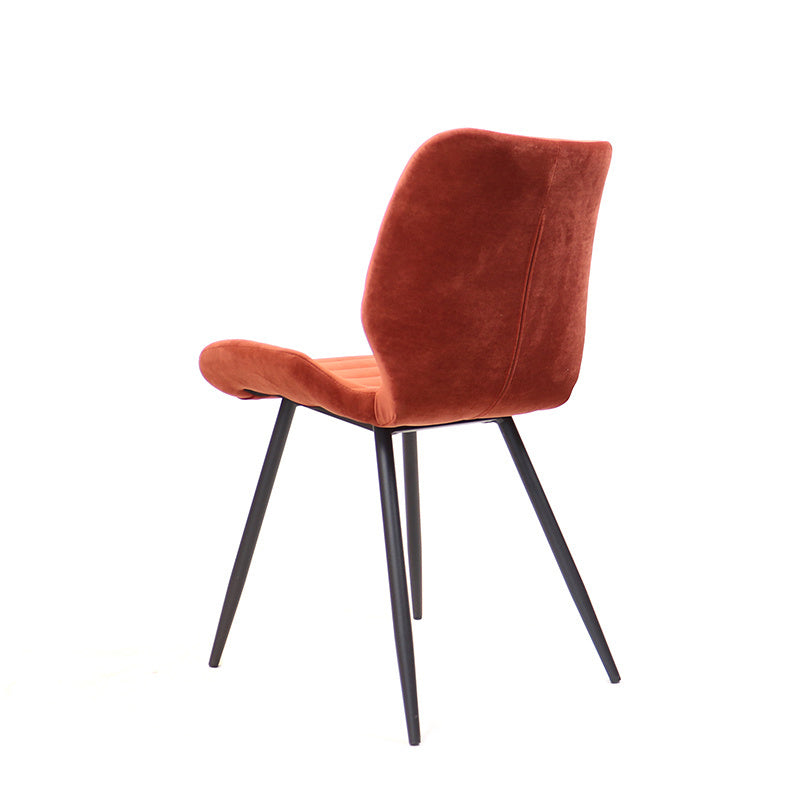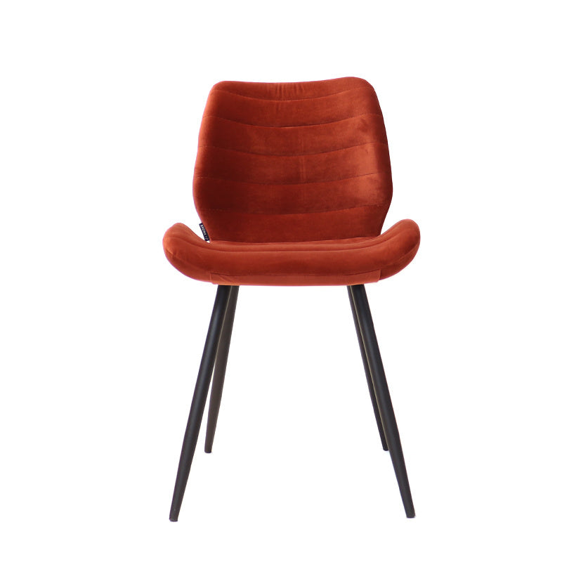 Toby heeft een mooie zitting met een horizontale streep patroon. De stoel heeft geen armleuningen waardoor de stoel ruimtebesparend is, maar toch een hoog zitcomfort heeft. De luxe stof van de eetkamerstoel heeft een martindale score van 70.000, wat betekent dat de stof heel slijtvast is! Daarnaast is de velvet stof waterbestendig, wat de stoel perfect maakt voor ieder interieur.
