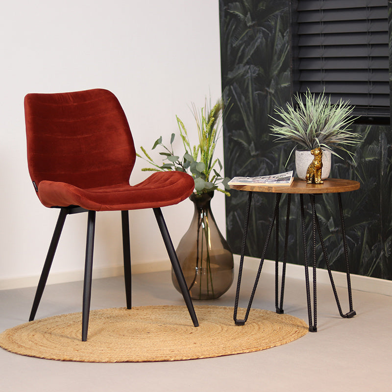 Velvet eetkamerstoel Toby is stoer, praktisch en heeft een heerlijk zitcomfort wat natafelen tot een waar feestje maakt! Door de combinatie van de velvet zitting en het metalen frame is de eetkamerstoel Toby perfect te combineren in verschillende interieurstijlen. Combineer de stoel met de bijpassende barkruk Toby om een mooi geheel te creëren!