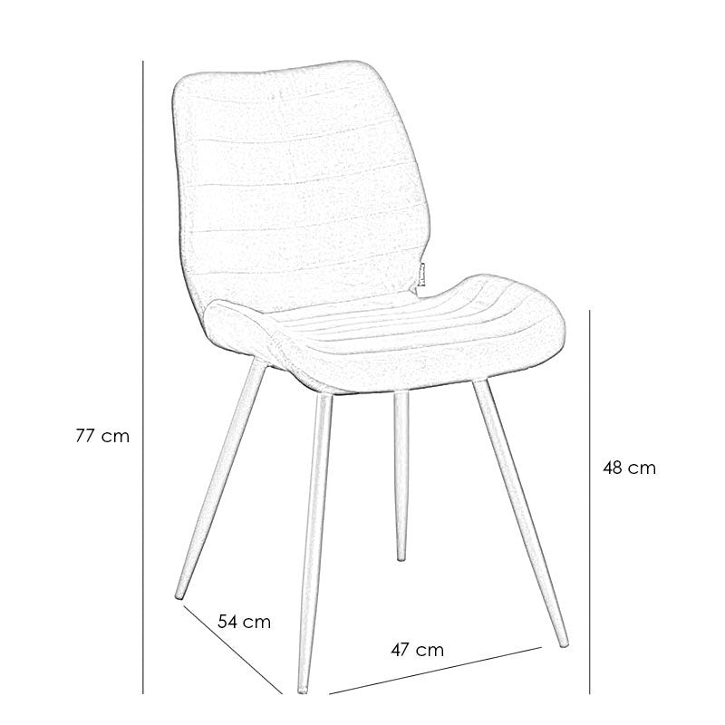 Toby heeft een mooie zitting met een horizontale streep patroon. De stoel heeft geen armleuningen waardoor de stoel ruimtebesparend is, maar toch een hoog zitcomfort heeft. De luxe stof van de eetkamerstoel heeft een martindale score van 70.000, wat betekent dat de stof heel slijtvast is! Daarnaast is de velvet stof waterbestendig, wat de stoel perfect maakt voor ieder interieur.