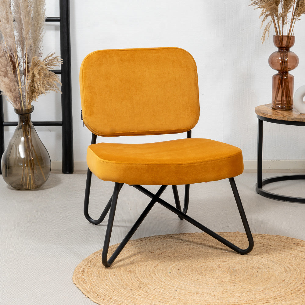 Fauteuil Julia heeft een opvallend gepoedercoat zwart metalen onderstel. De zitting is voorzien van een mooie, glanzende velvet stof. Velvet (ook wel fluweel of velours genoemd), geeft een luxe uitstraling aan de fauteuil en voelt zacht aan. Julia mag dan een subtiele zitting hebben, maar dat neemt niet weg dat de fauteuil heerlijk zit. Deze fauteuil is perfect voor een gezellig avondje met vrienden en familie. Julia is verkrijgbaar in de kleuren groen, taupe, zwart, koper, roze en okergeel.