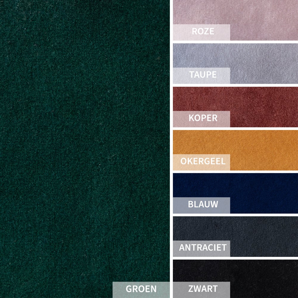 - Deze velvet stof is waterafstotend en onderhoudsvrij.