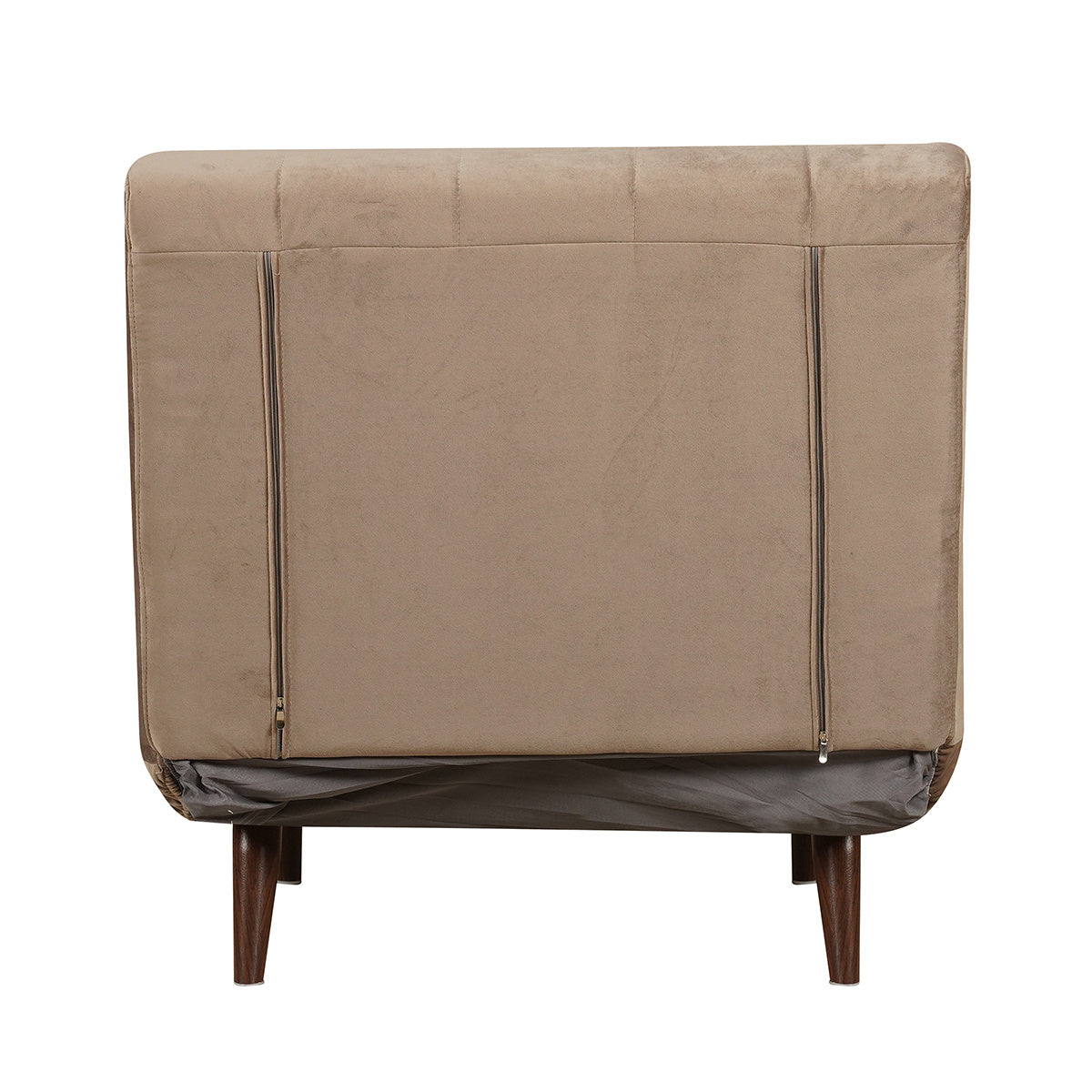 De slaapfauteuil is gemaakt van een velvet stof. Deze velvet stof is waterafstotend, wat ideaal is in het onderhoud. Deze slaapbank is zorgvuldig opgebouwd voor optimaal comfort en duurzaamheid. De zitting en het liggedeelte bestaan uit een kern van 2 cm dik schuim met een dichtheid van 25 kg/m³, aangevuld met een 7 cm dikke laag polyfiber. Deze polyfiber is met de hand in kleine pockets geplaatst voor een gelijkmatige verdeling en extra zachtheid. Daarnaast is de slaapbank voorzien van nosag veren, die zorgen voor een stevige ondersteuning en een lange levensduur.