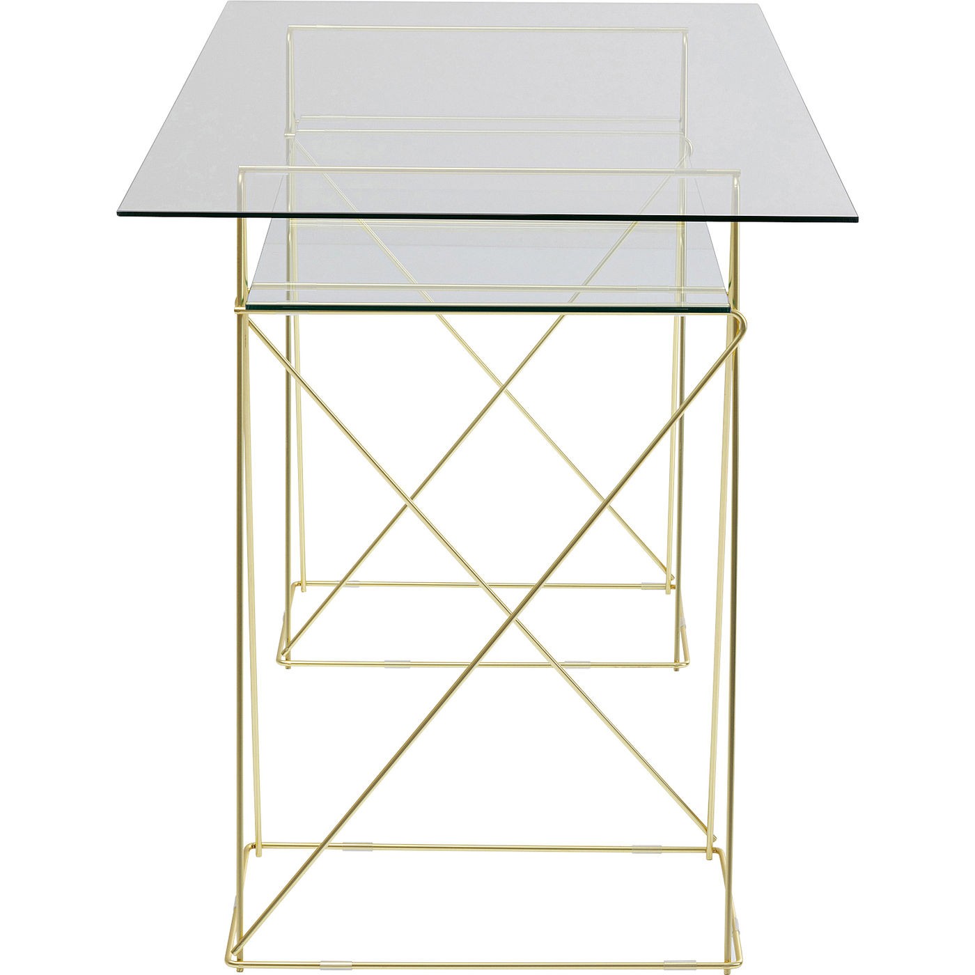 - Elegant en Modern Design: Het bureau heeft een eigentijds ontwerp met een transparant glazen blad en elegante gouden messing matte metalen poten.