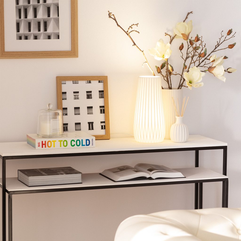 Richt de camera van je mobiele telefoon of tablet op de QR-code. Klik de link aan die in beeld verschijnt en het product wordt virtueel in je eigen huis geplaatst. Zo weet je zeker of het bij je past.