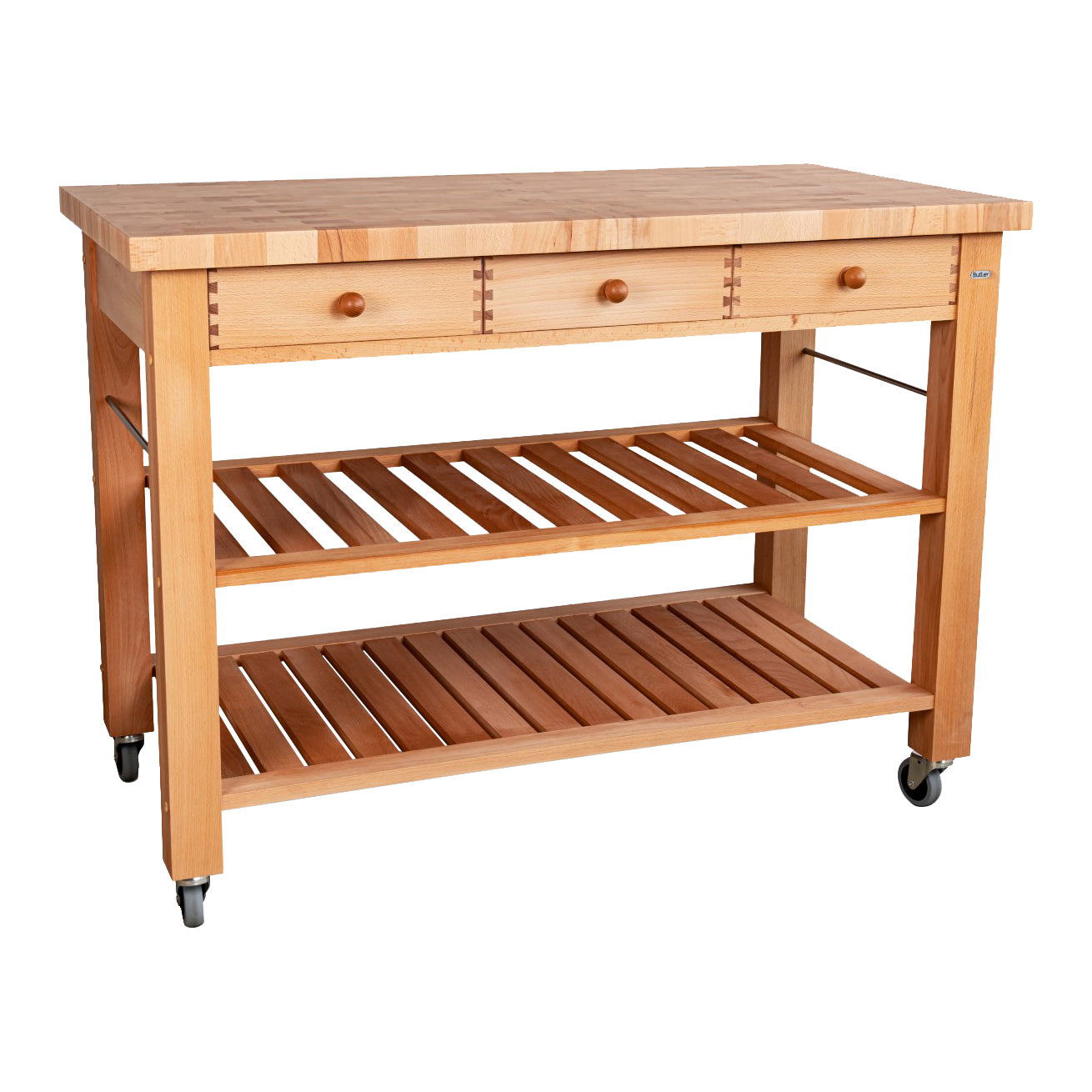 Deze trolley van Butler is gemaakt van duurzaam, gestoomd beukenhout en heeft een stoer, kopshouten bovenblad van 4 centimeter dik.