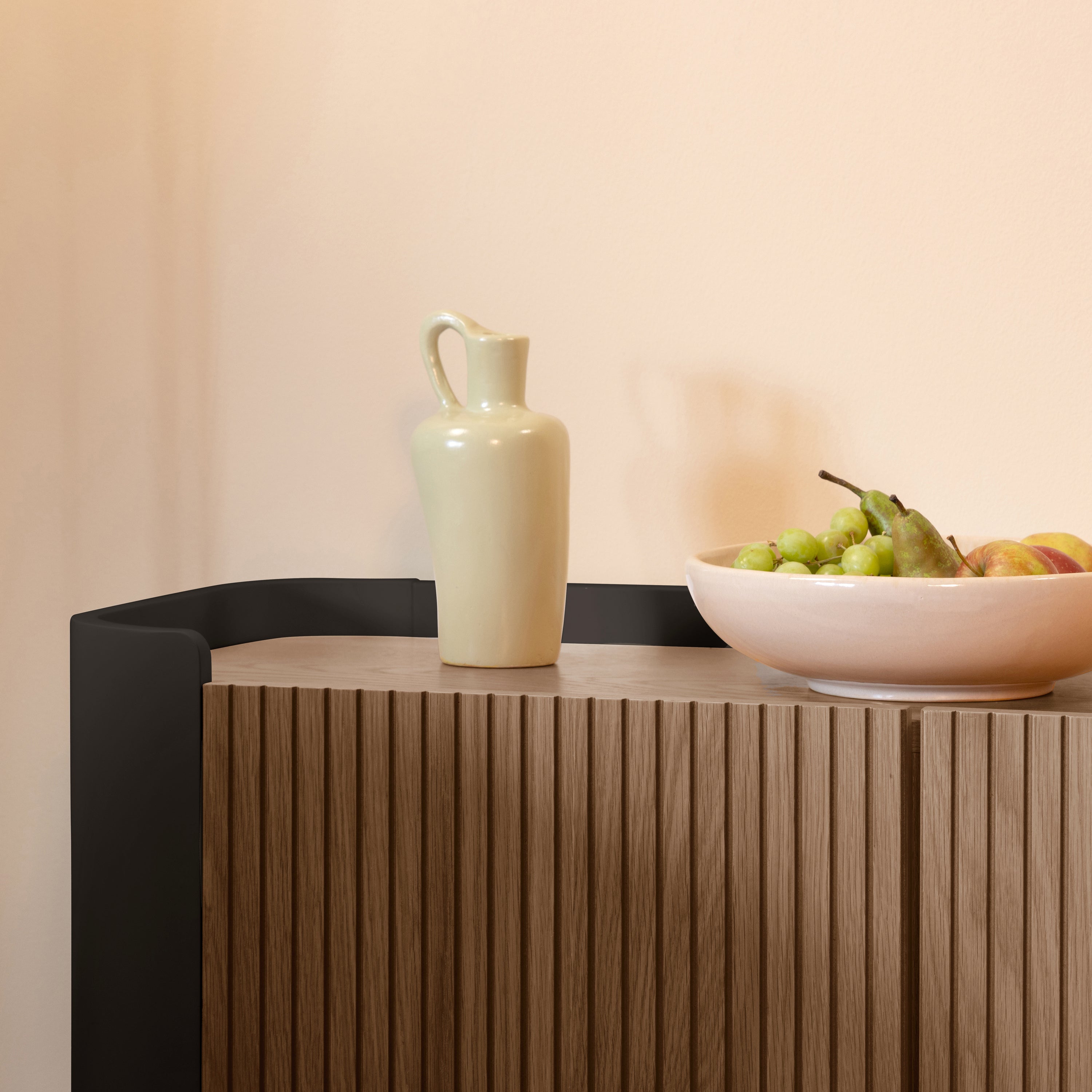 - Strak MDF met PU-coating en warm walnootfineer voor een chique look