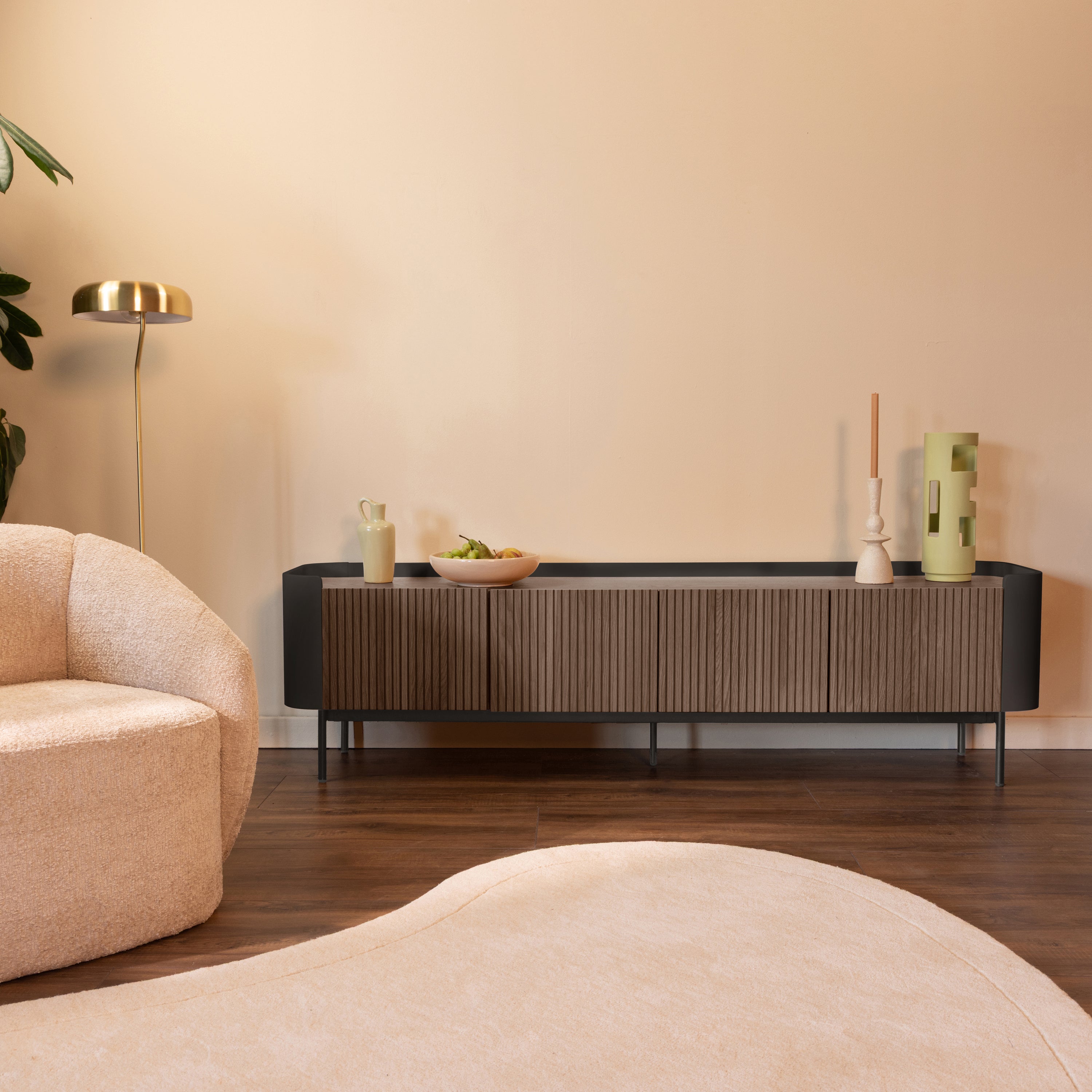 - Met zijn metalen jasje en poten heeft dit tv-meubel die coole industriële look
