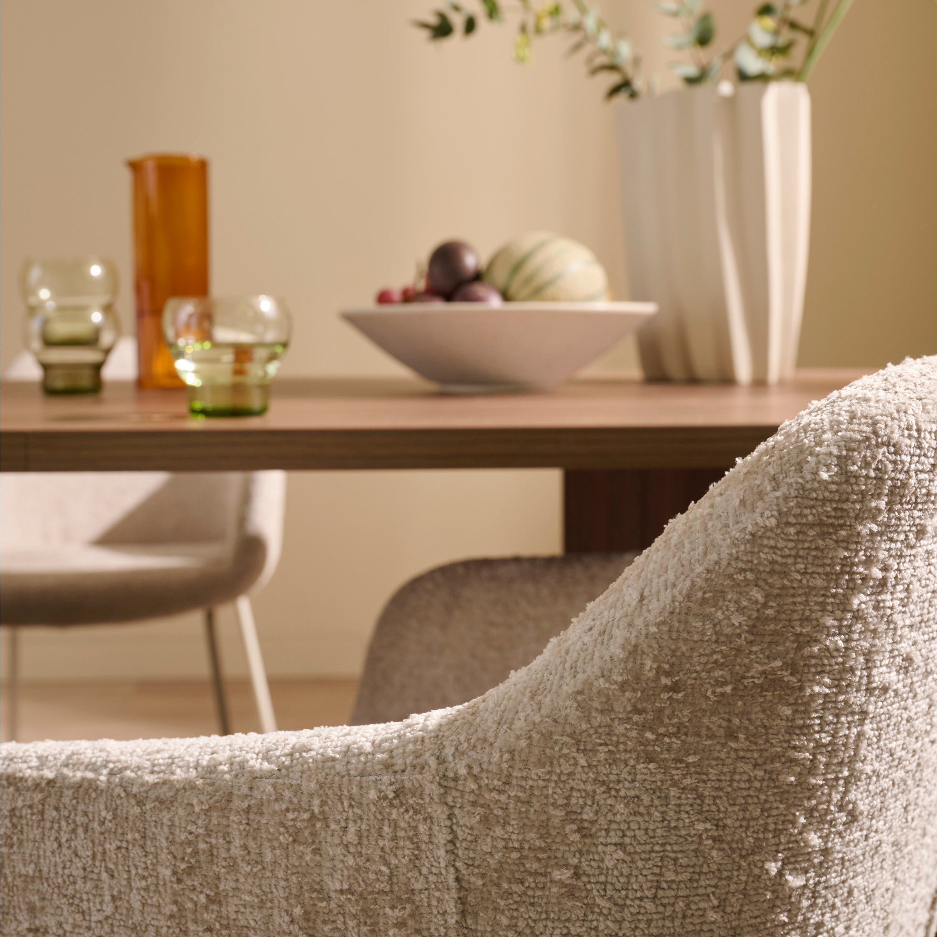 - Met bouclé op de zitting, voelt deze stoel zowel luxe als heerlijk fluffy aan!