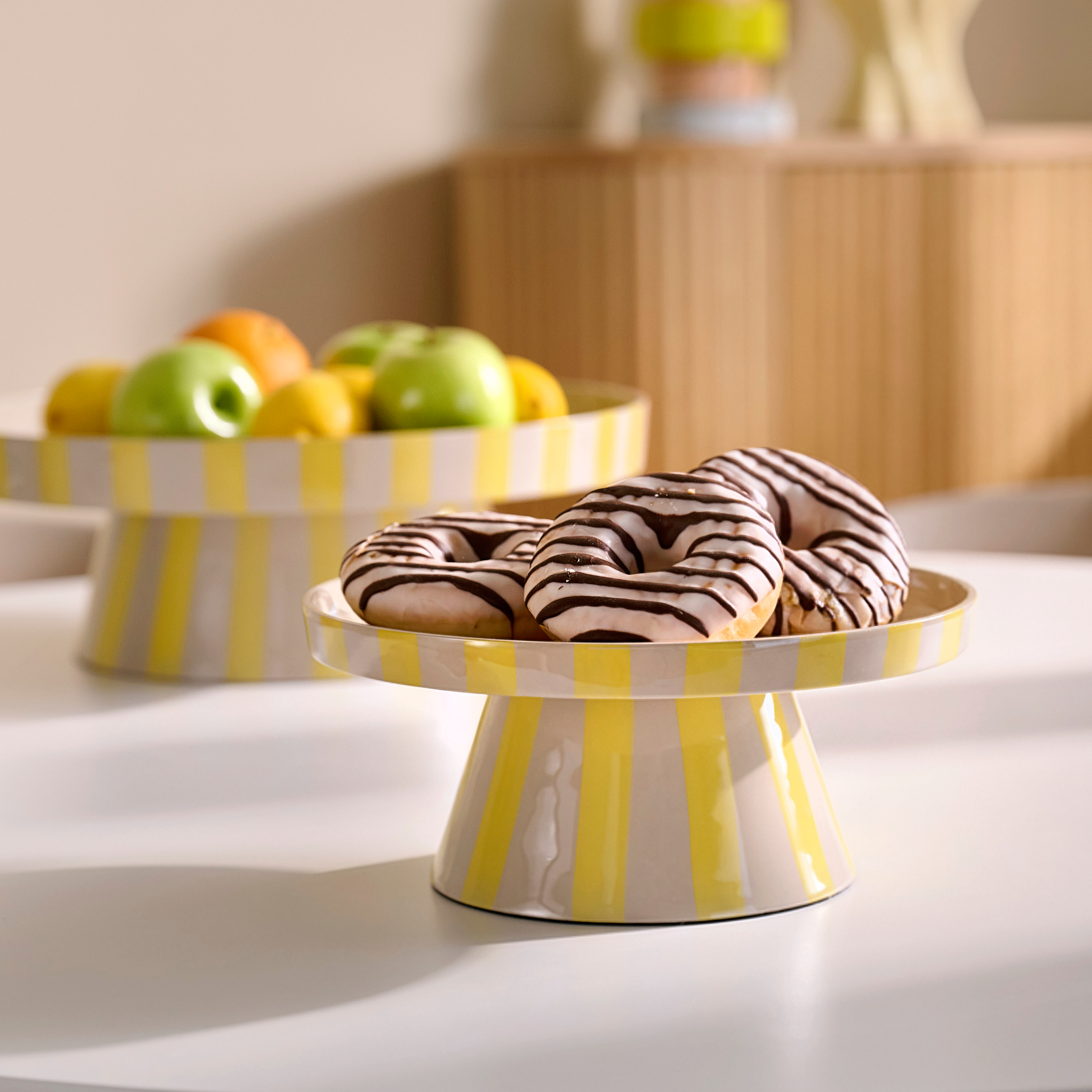 - Ø 24 x H 10,5 cm – ideaal voor borrelhapjes, fruit of koekjes