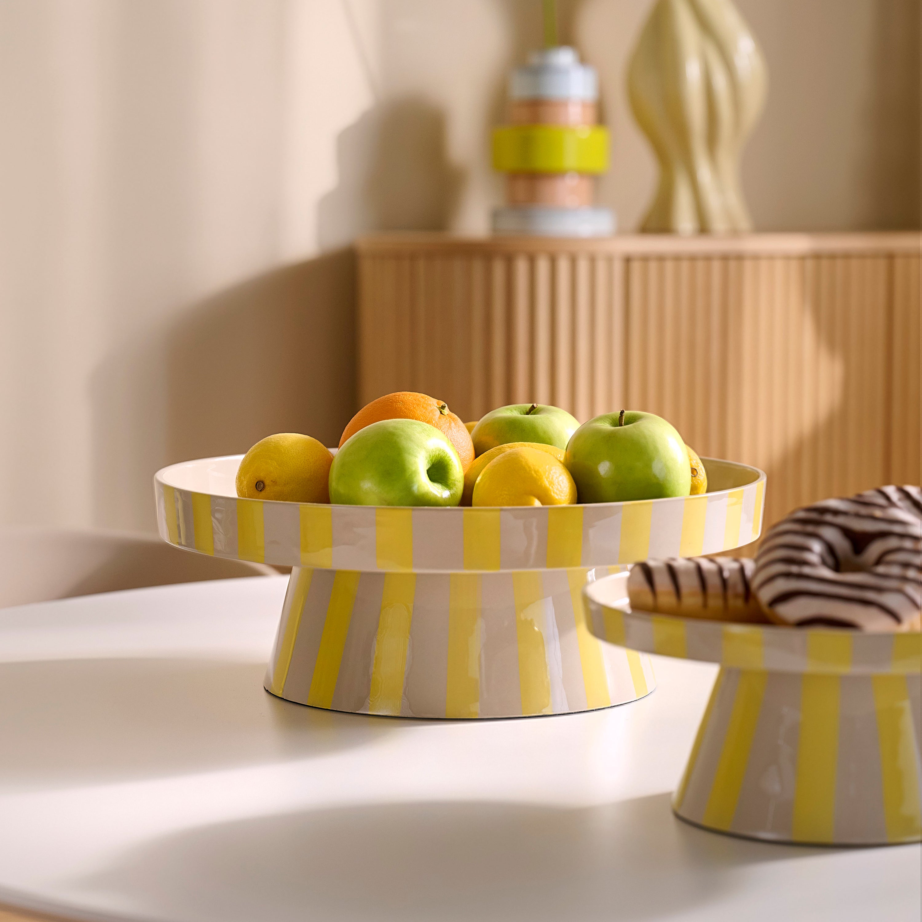 - Ø 32 x H 13 cm – royaal formaat voor grotere tafelmomenten of centerpiece styling