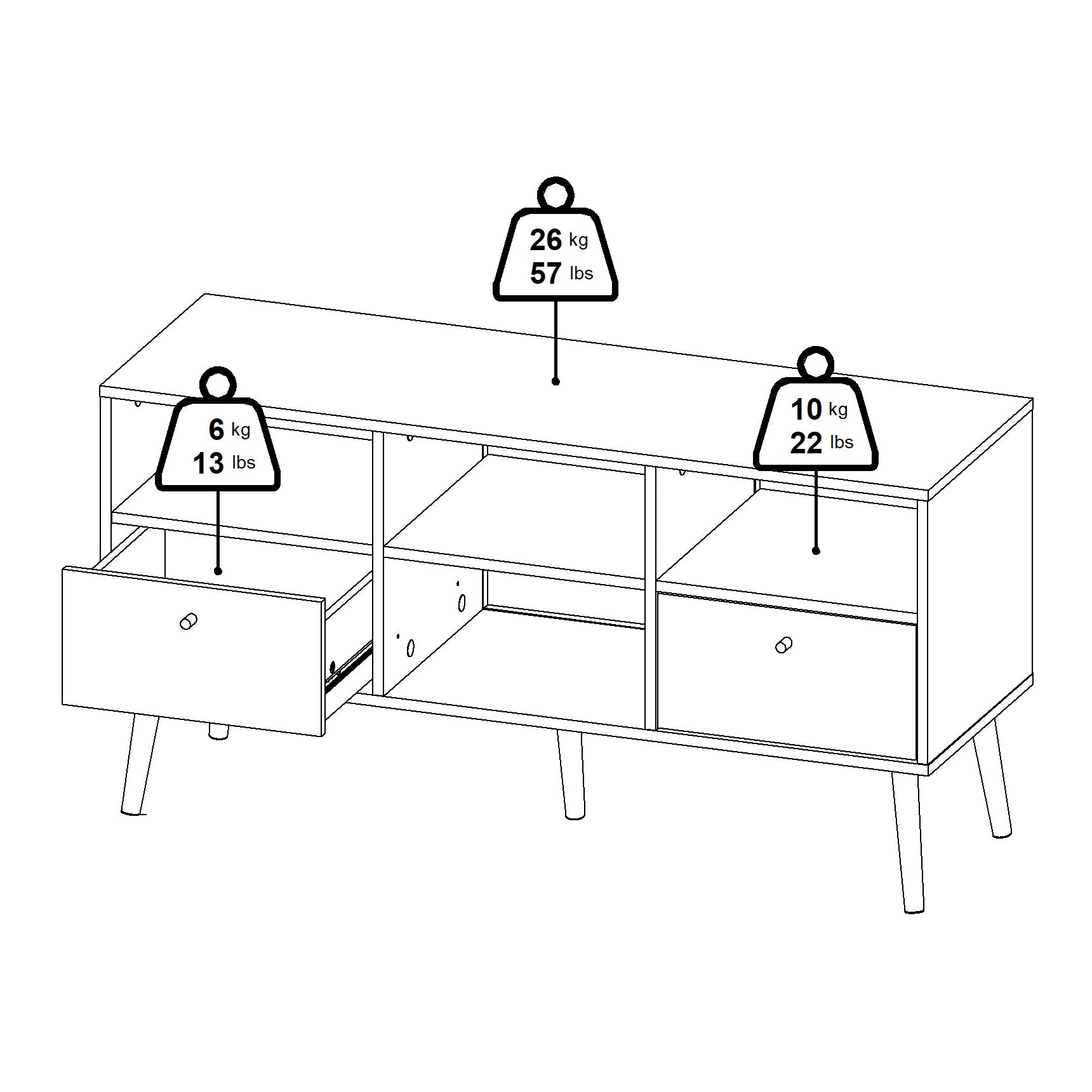 - Scandinavisch en strak tv-meubel van H 61 x B 117 x D 39 cm