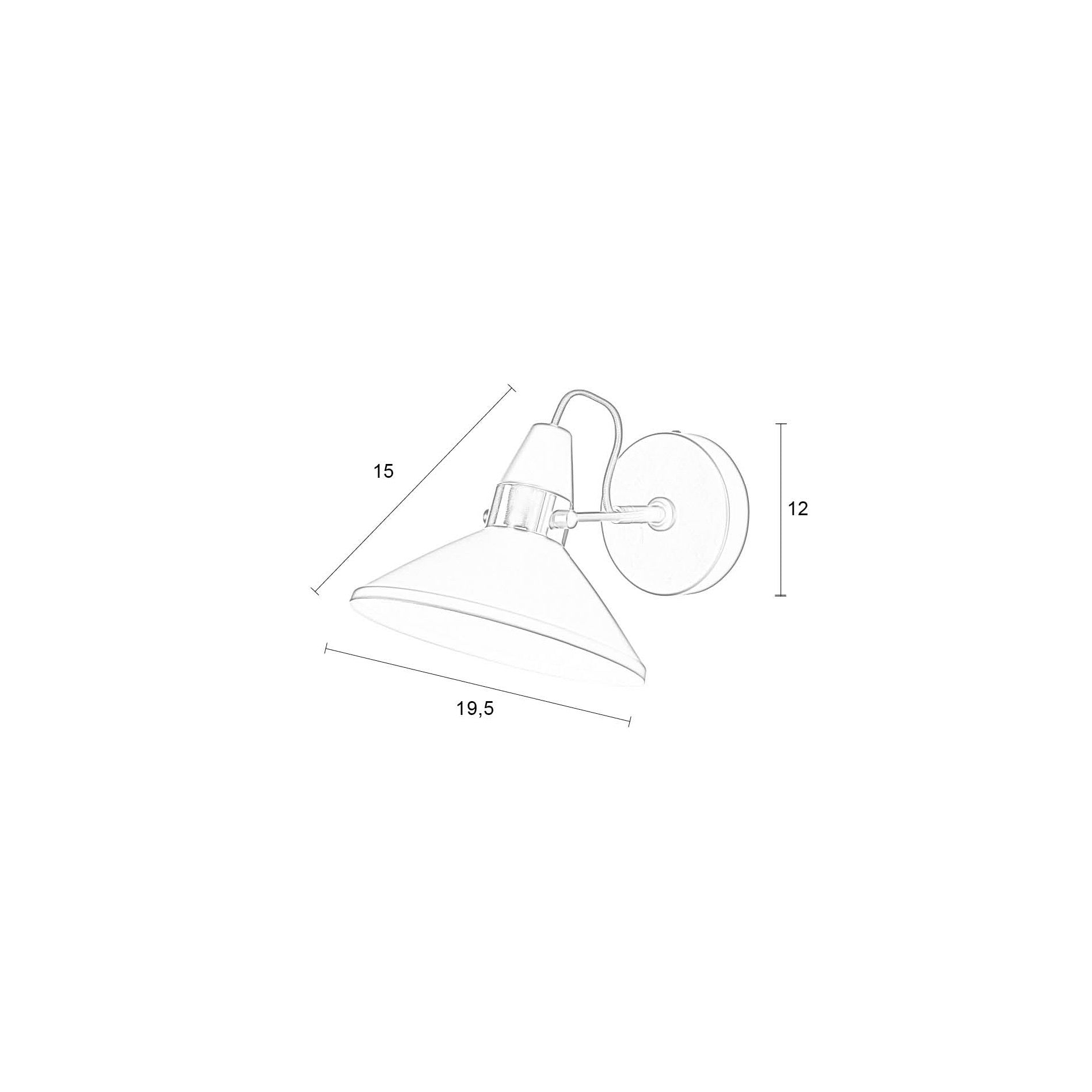 De lamp bestaat uit een wandstuk met een diameter van 12 centimeter en een hoogte van 2,5 centimeter en een lampenkap met een diameter van 19,5 centimeter en een hoogte van 7,5 centimeter. Deze wandlamp is gemaakt van zwart, gepoedercoat ijzer en is voorzien van een messing fitting. De benodigde lichtbron wordt niet meegeleverd. Voor deze wandlamp heb je een led lichtbron met een E27 fitting van maximaal 4 Watt nodig. Deze wandlamp heeft een gewicht van 0,7 kilogram. De wandlamp dient op het lichtet aangesloten te worden.