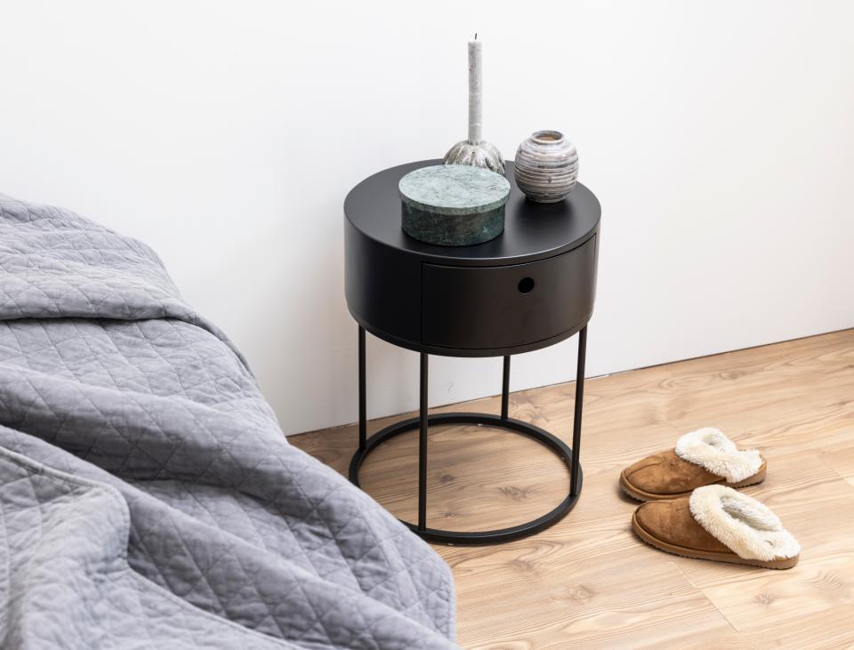 Een keer iets anders dan het normale, strakke nachtkastje? Dan heb je hier jouw match gevonden in het Nim nachtkastje van by fonQ. Hij is namelijk rond en heeft hierdoor een zachte uitstraling. Maar zijn metalen frame geeft hem toch wat stoers.