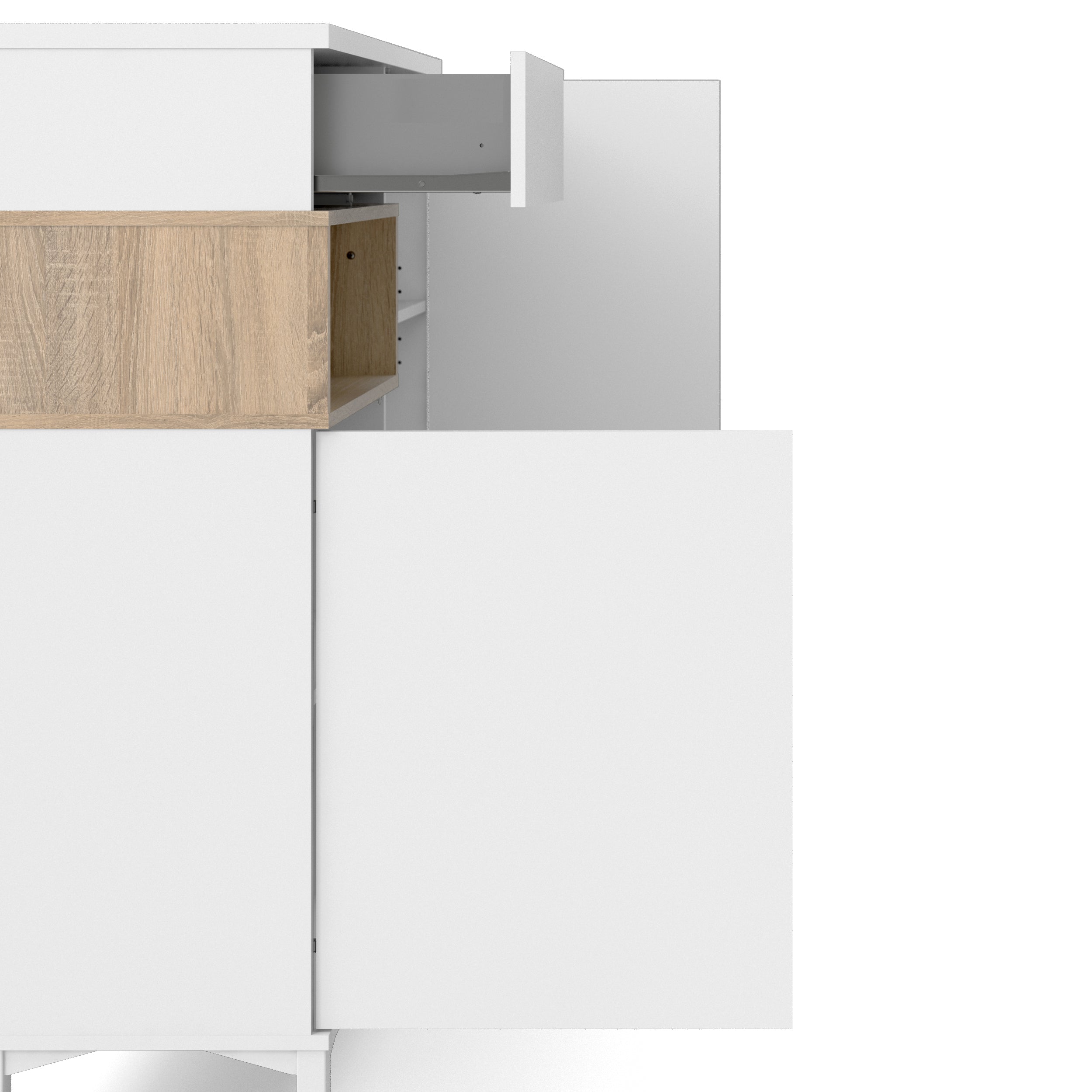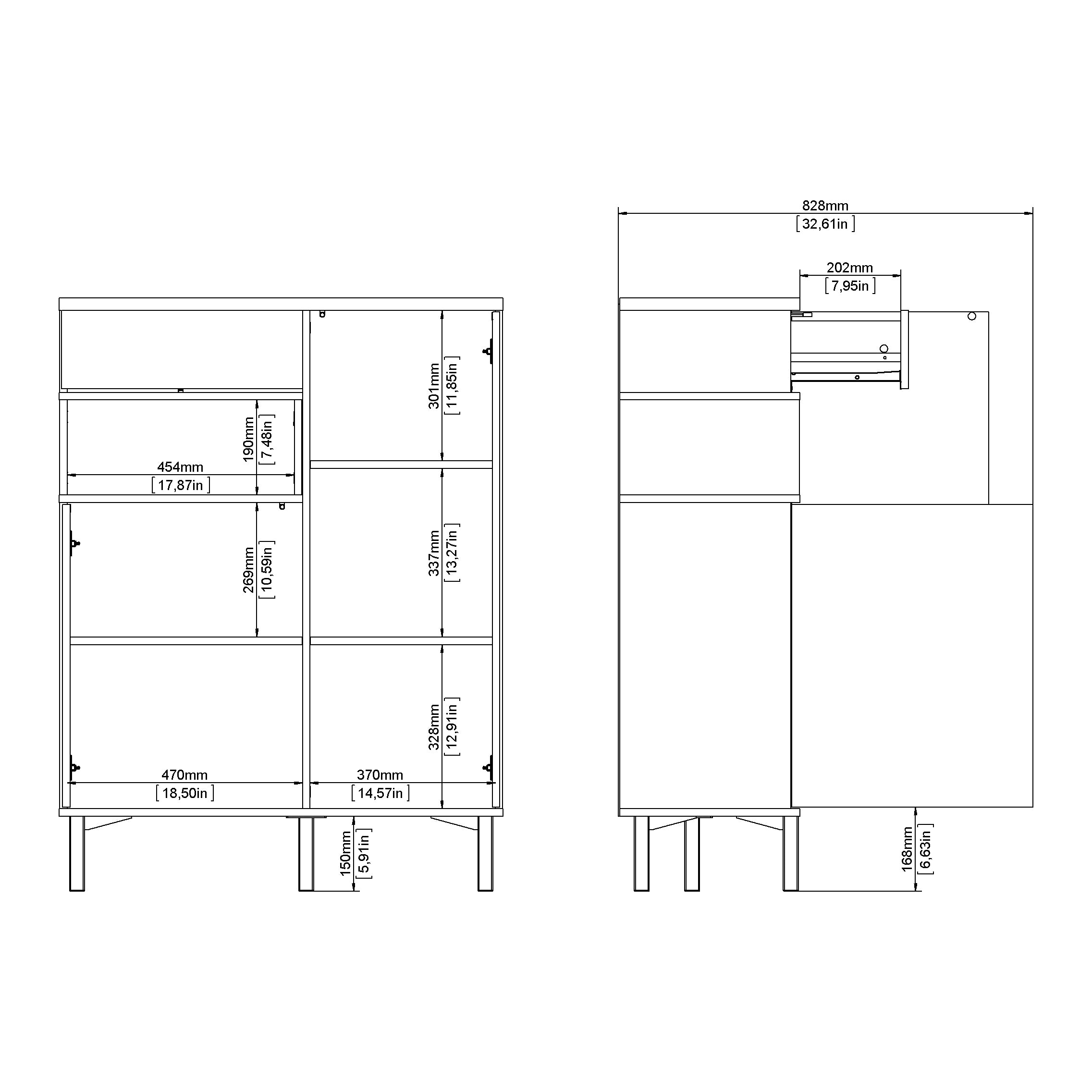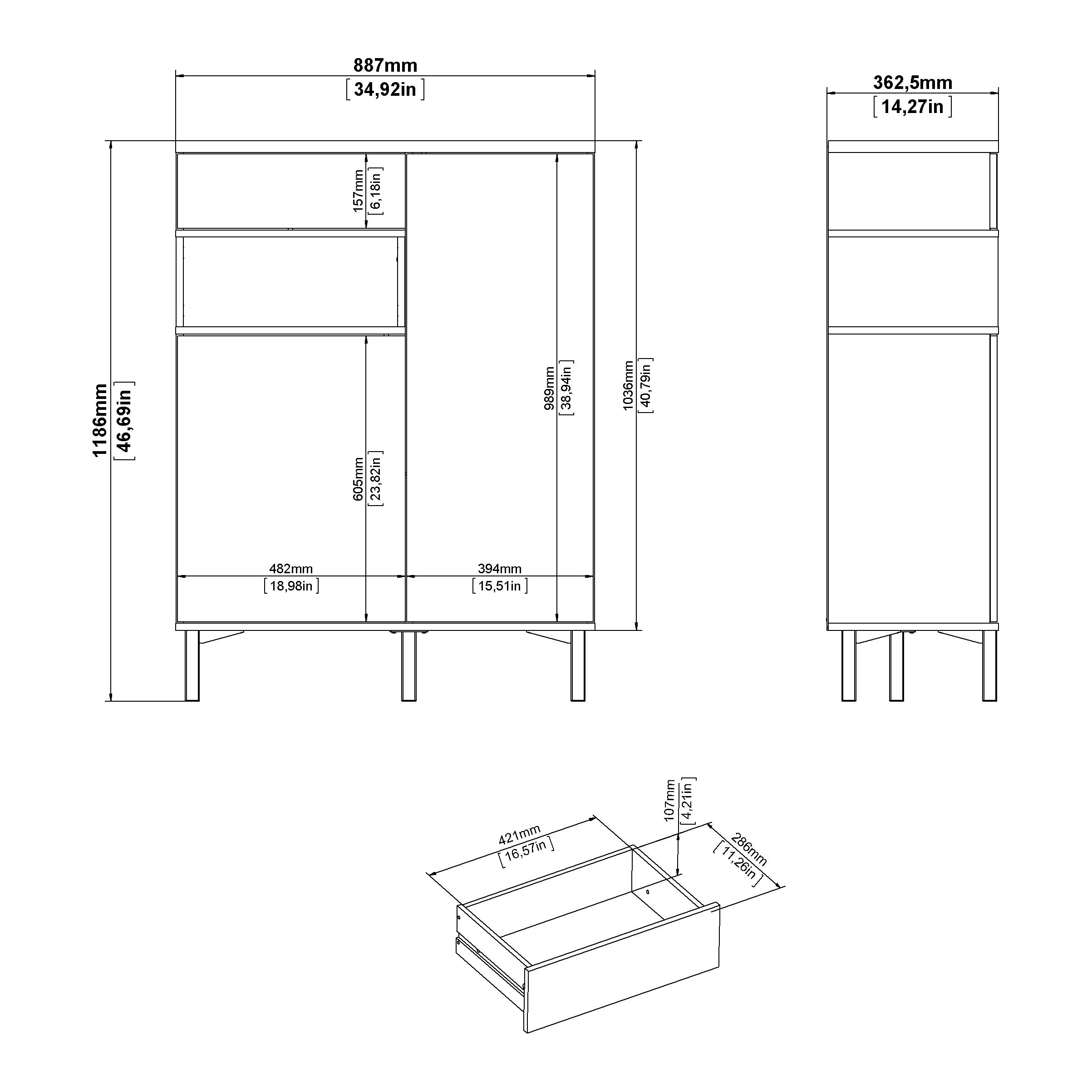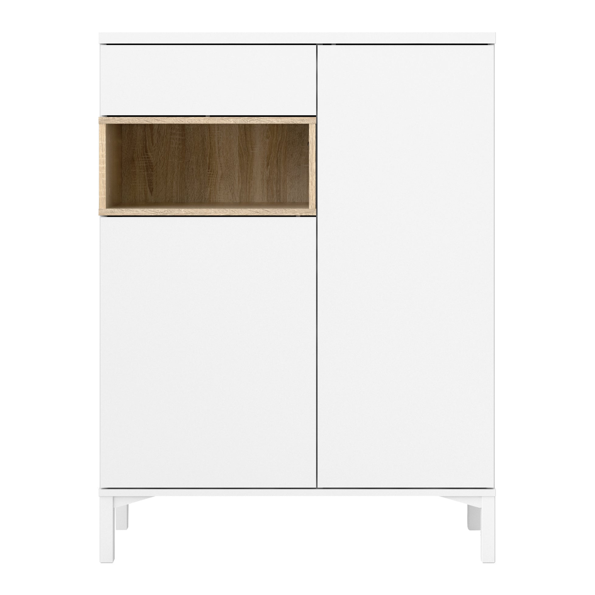 - De kast heeft één lade en zes opbergvakken waarvan vijf gesloten