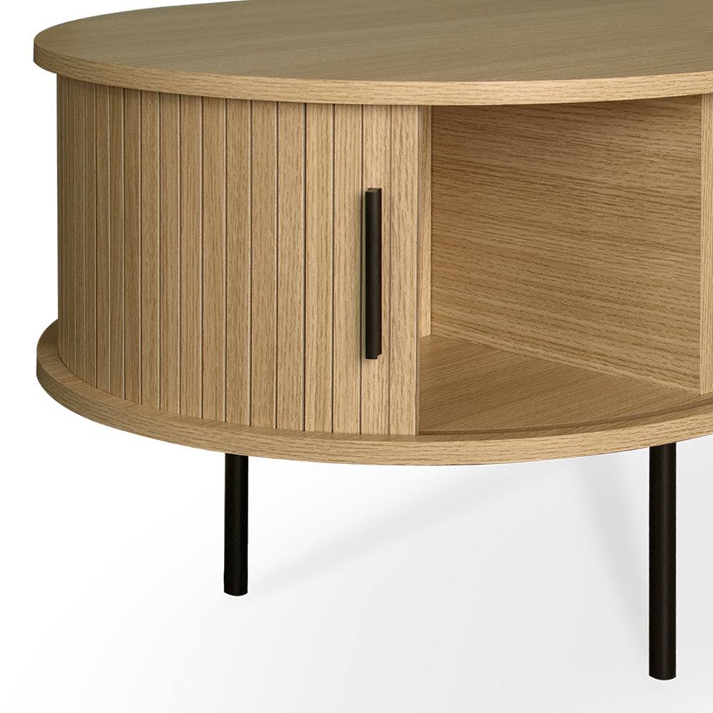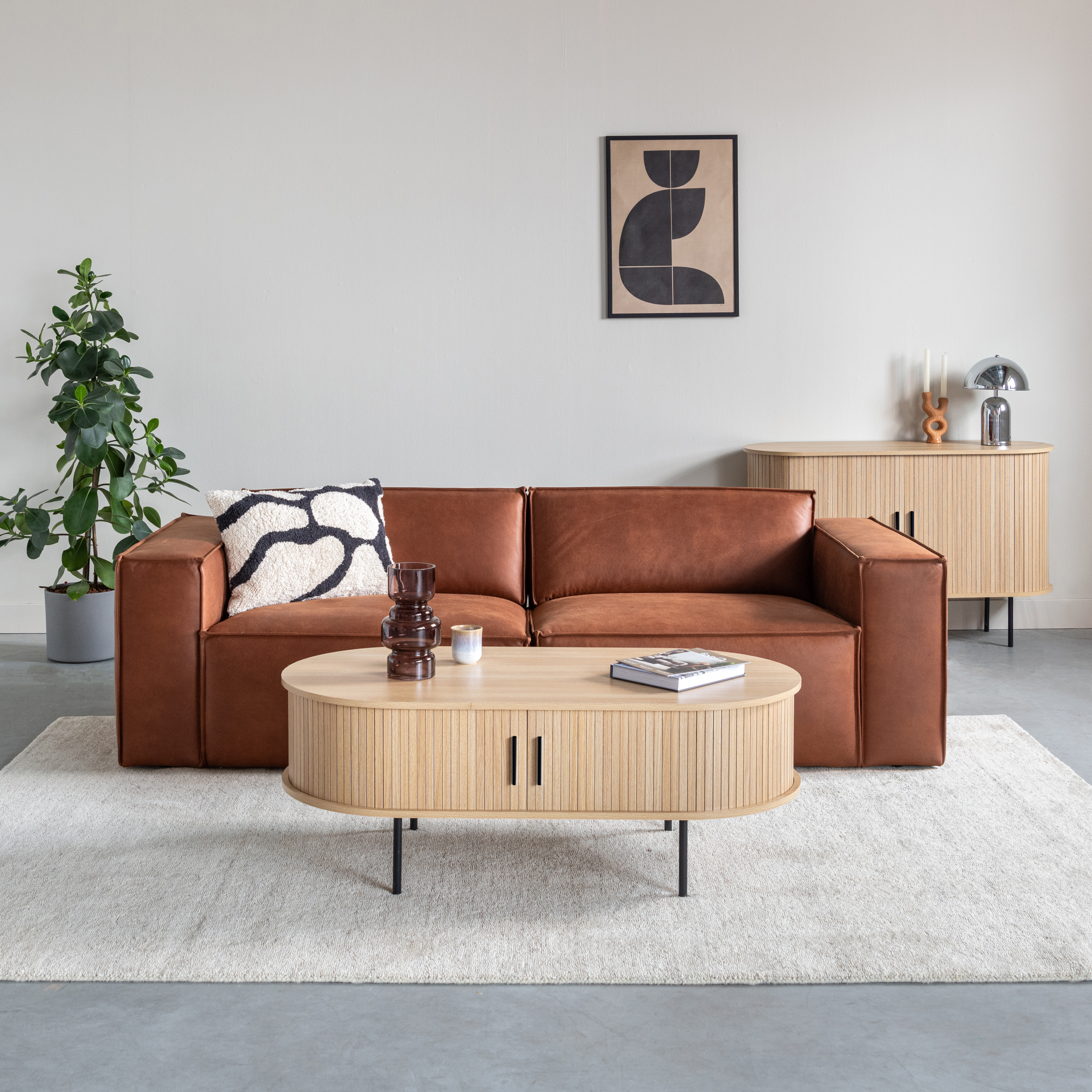 - Leuk detail: de salontafel heeft roldeuren waarbij altijd één deel openstaat