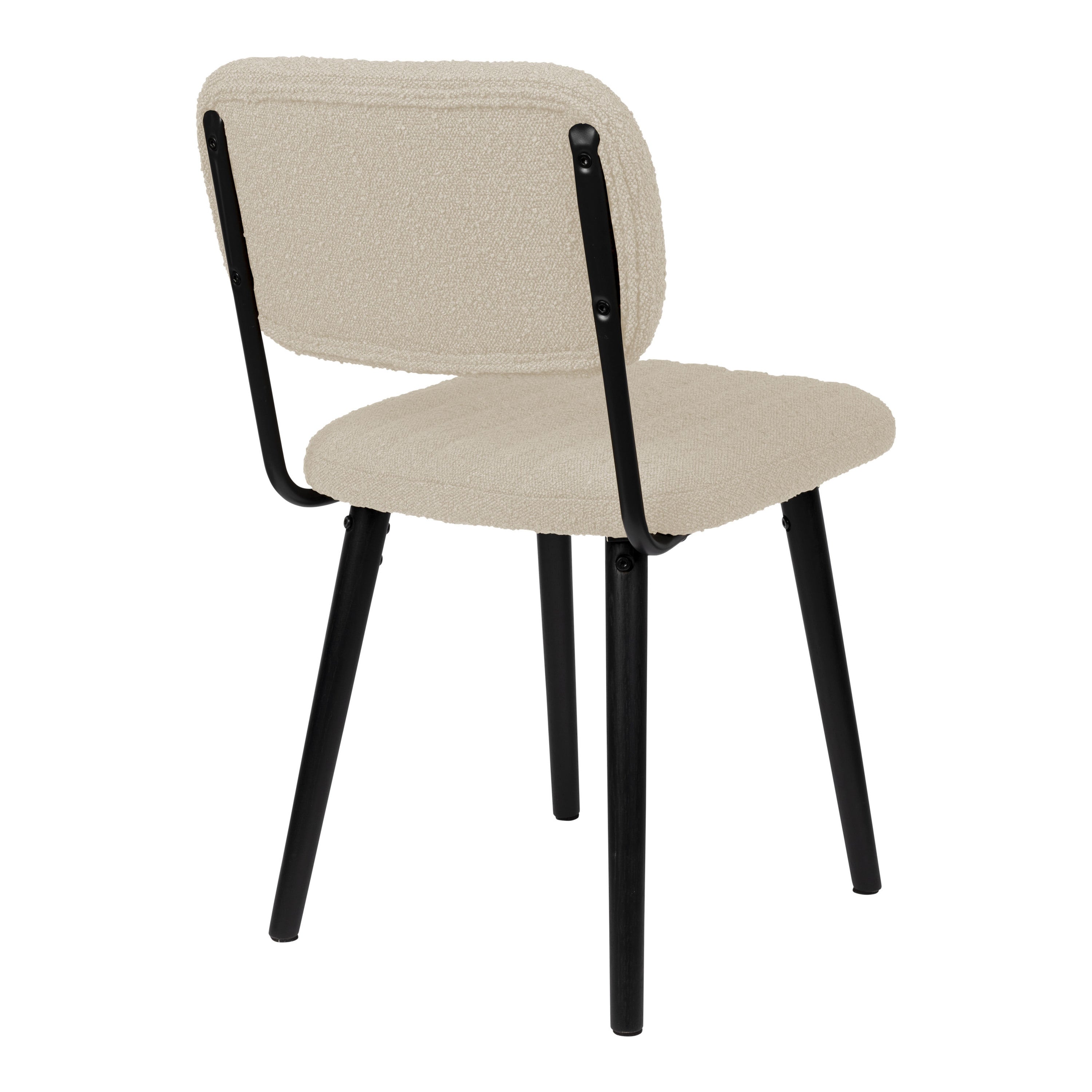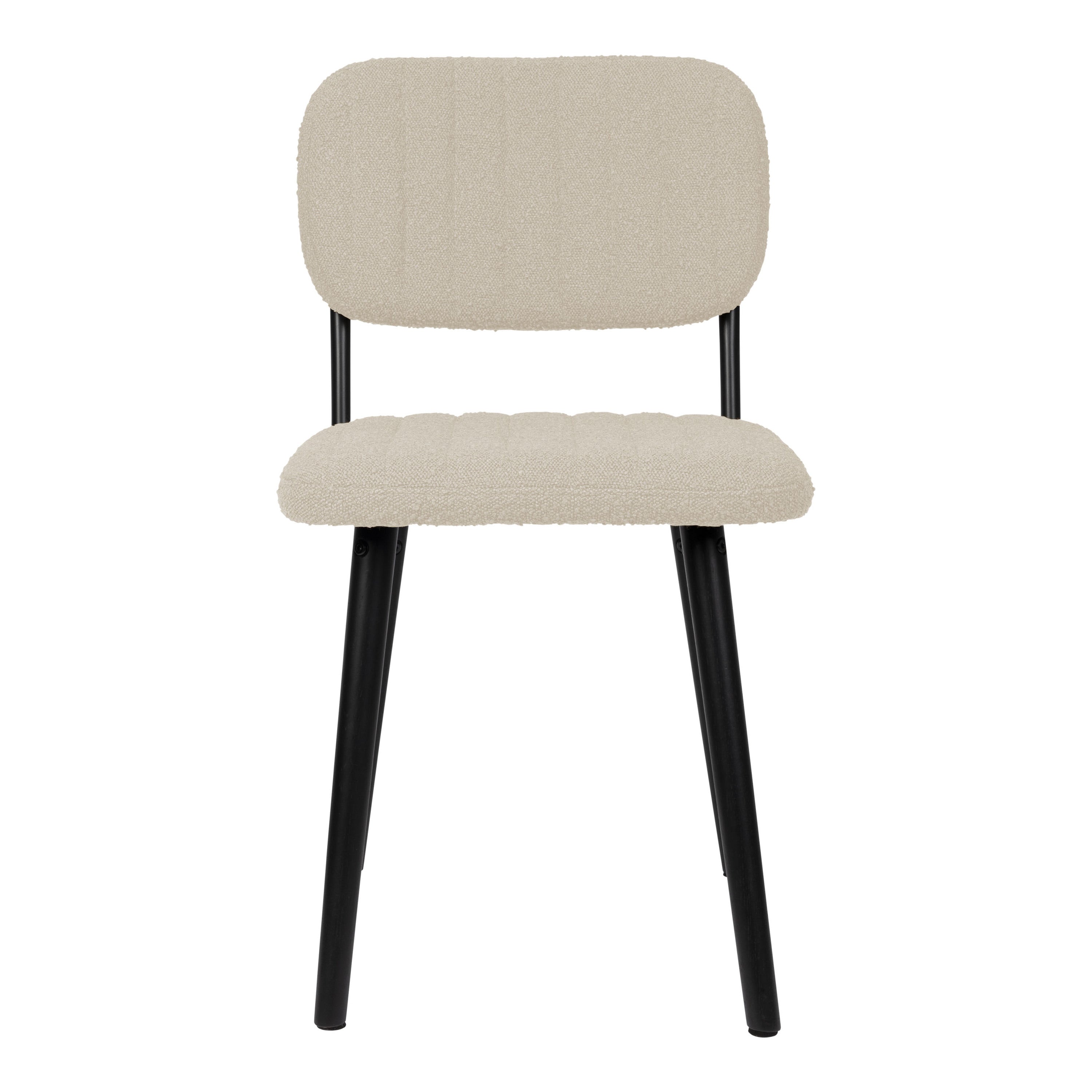 - Een zachte bouclé stof afgewerkt met verticale stiksels
